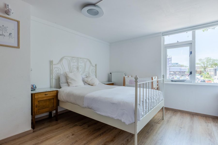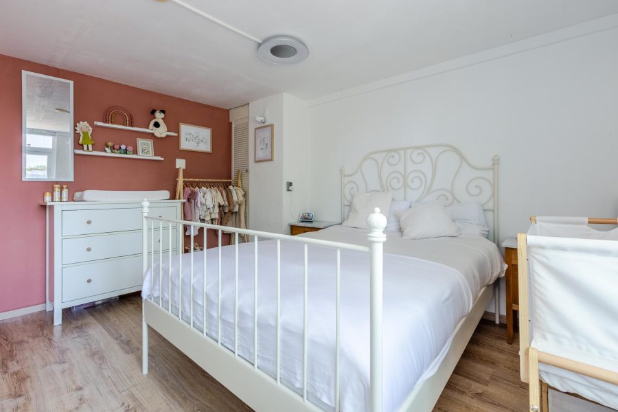 Via de open trap in de woonkamer bereik je de overloop van deze verdieping. Hier tref je twee keurig afgewerkte slaapkamers aan en de badkamer. Eén slaapkamer ligt aan de achterzijde en de tweede slaapkamer ligt aan de voorzijde, naast de badkamer. De eigentijdse badkamer (2023) is voorzien van een badmeubel met wastafel en spiegel en een inloopdouche met hand- en regendouche.