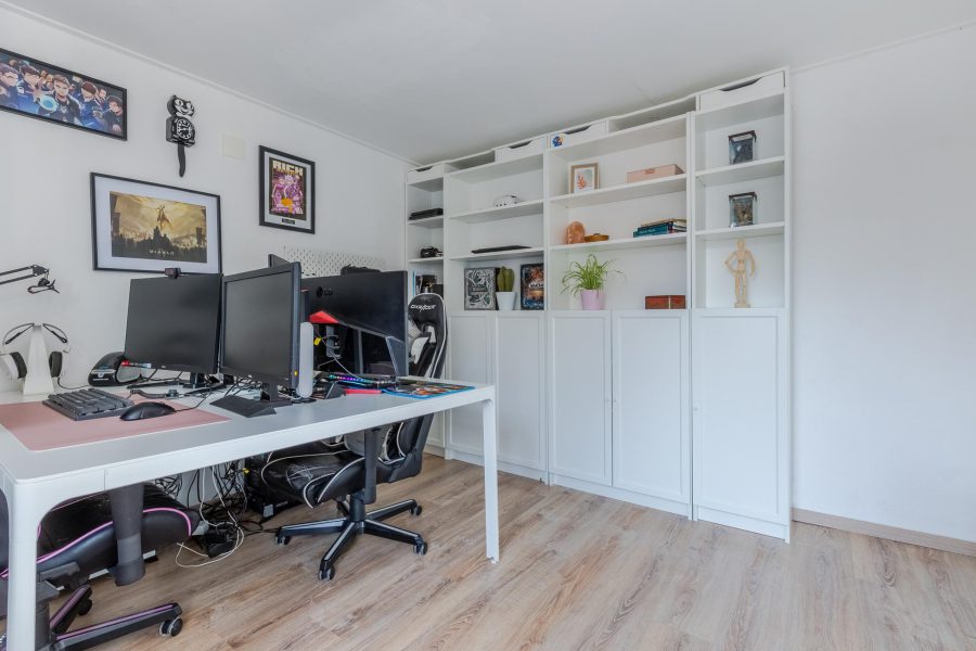 You reach the landing of this floor via the open staircase in the living room. Here you will find two nicely finished bedrooms and the bathroom. One bedroom is at the back and the second bedroom is at the front, next to the bathroom. The contemporary bathroom (2023) is fitted with a vanity unit with sink and mirror and a walk-in shower with handheld and rain shower.