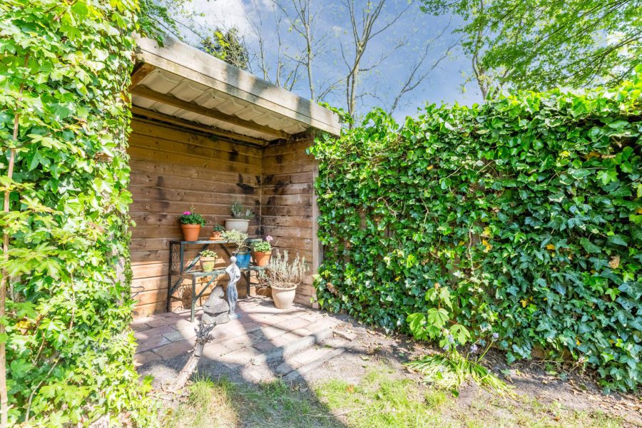 • Beschutte tuin met berging en overkapping