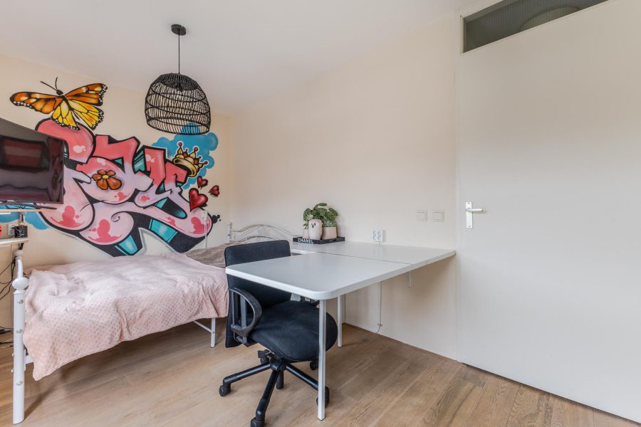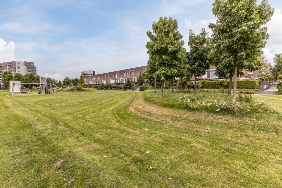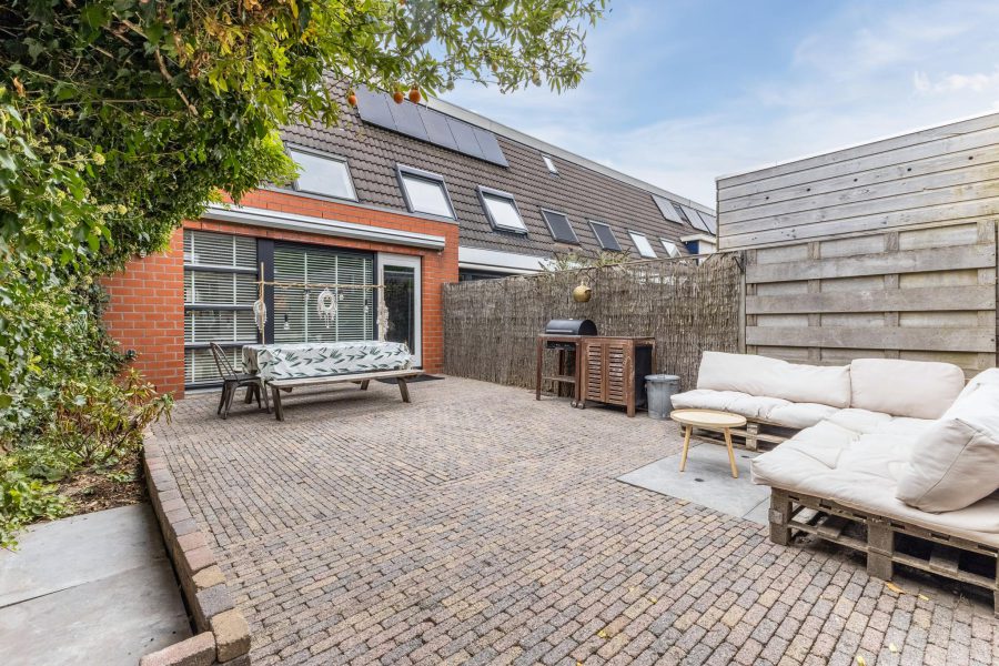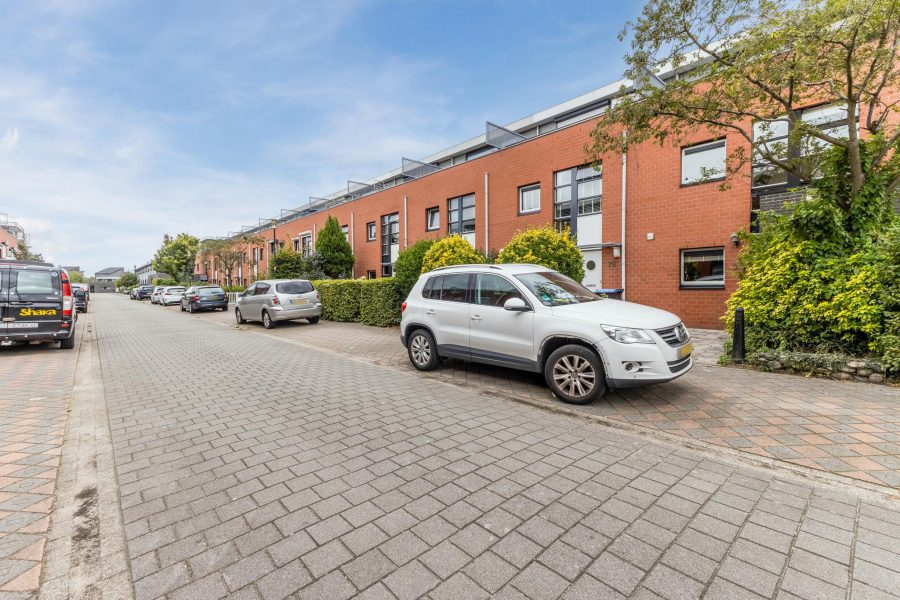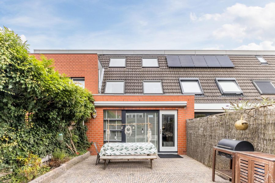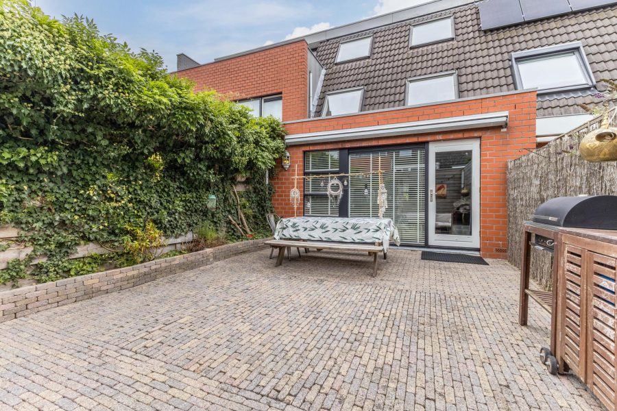 This modern terraced house (1995) offers plenty of living space (124.1 m2), a very bright and spacious living room with a semi-open kitchen, a luxurious bathroom, a separate laundry rooom and no less than 4 spacious bedrooms. The property is located on a spacious plot with sunny back garden facing the south west. A notable plus of this property is the large roof terrace (12.2 m2) on the second floor: a wonderful extra outdoor lounge area!