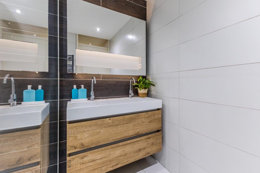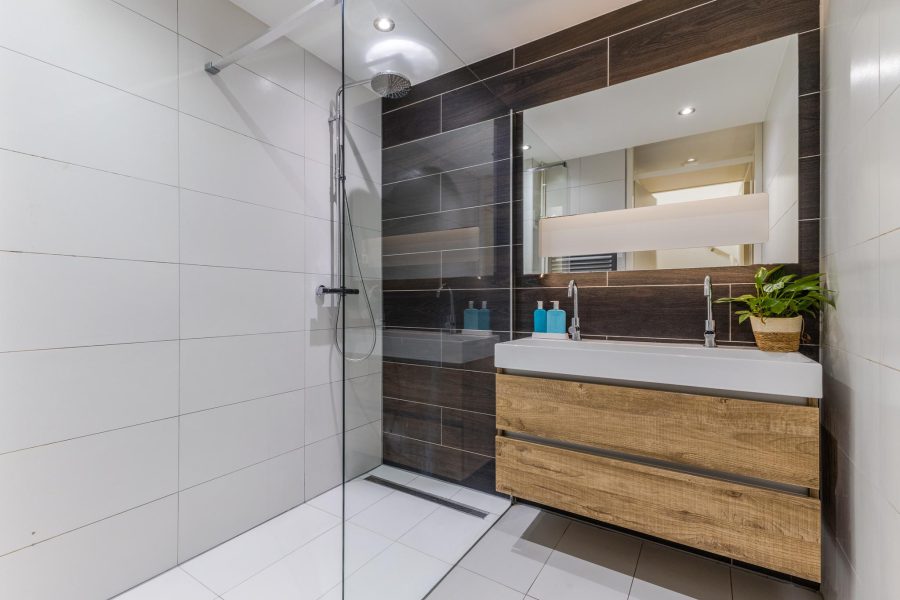 Hier vinden we 3 ruim bemeten slaapkamers, een separaat toilet en de badkamer met dubbele wastafel met meubel en een inloopregendouche.