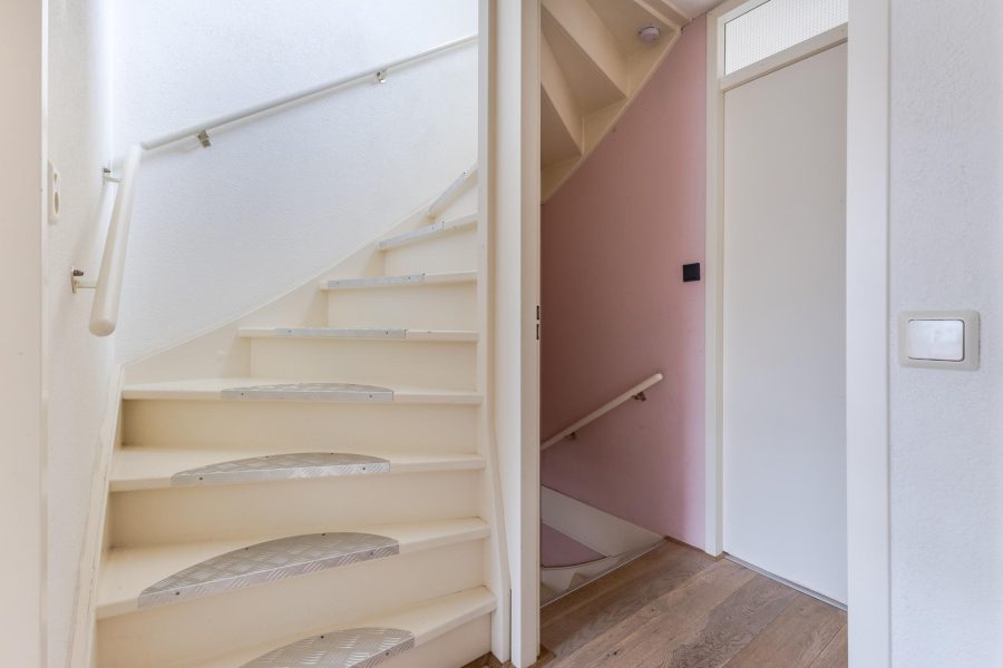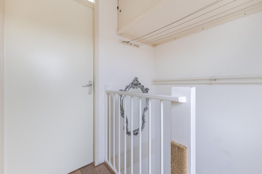 Via de trap in de woonkamer, bereiken we de overloop van de eerste verdieping.