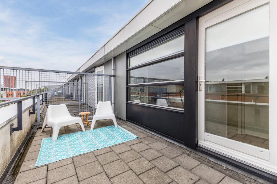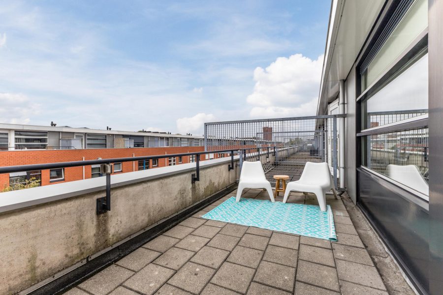 Vanaf de overloop is er tevens toegang tot het ruime, betegelde dakterras op het noordoosten.