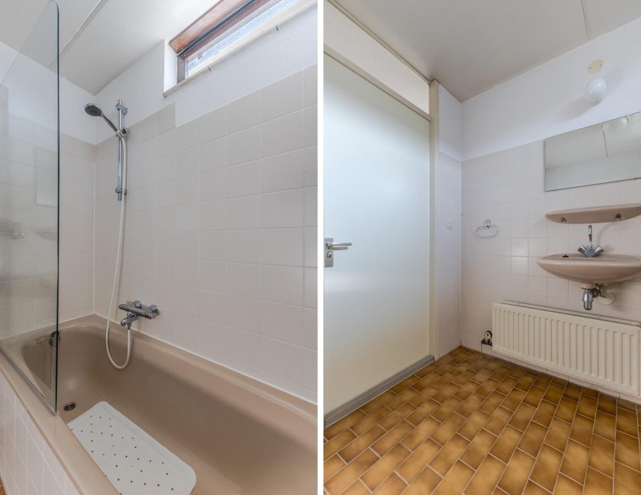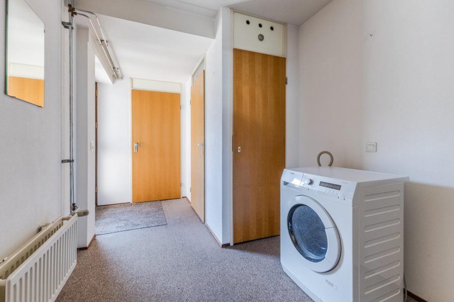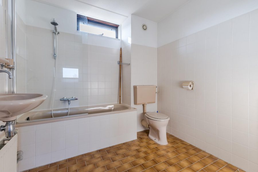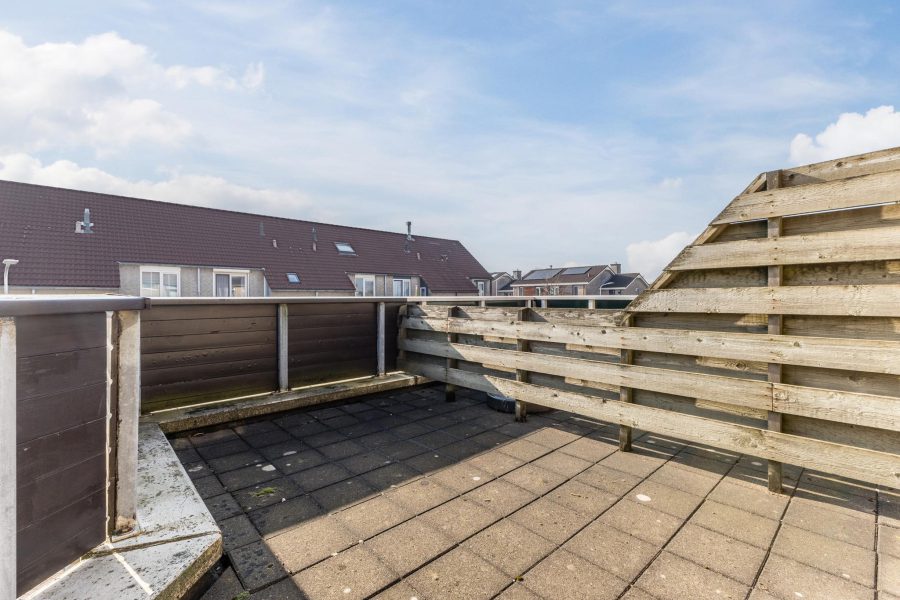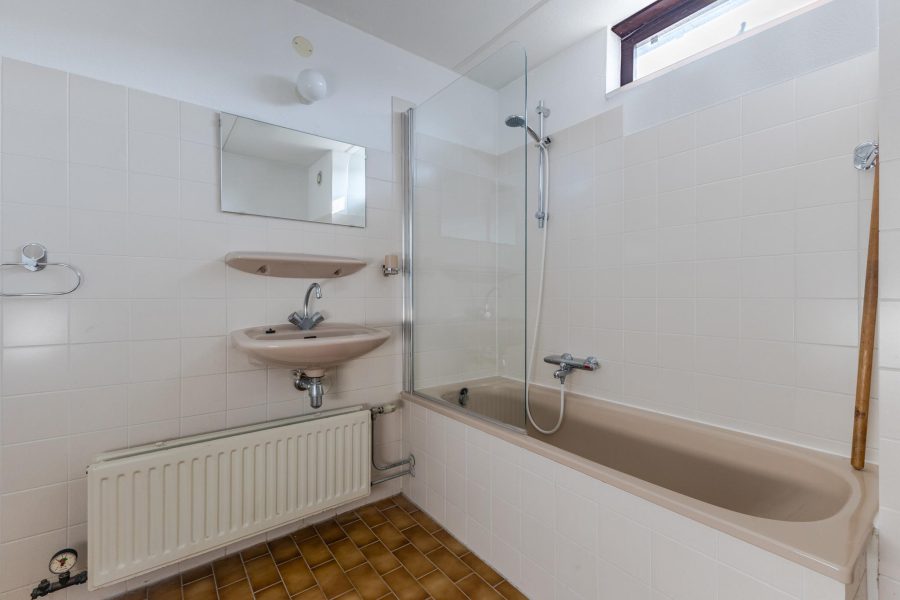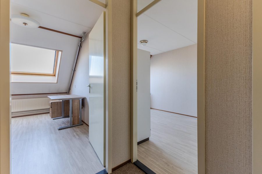 Via the upholstered stairs, we reach the landing of this floor. Here you will find three nicely finished bedrooms and the bathroom. Two bedrooms are located at the rear and natural light enters here via Velux skylights. The third bedroom is at the front and offers access to a sunny roof terrace with open views. Next to this bedroom is the bathroom fitted with a washbasin with mirror, a stand-up toilet and a bath with shower installation. Here you will also find a connection for washer and dryer.