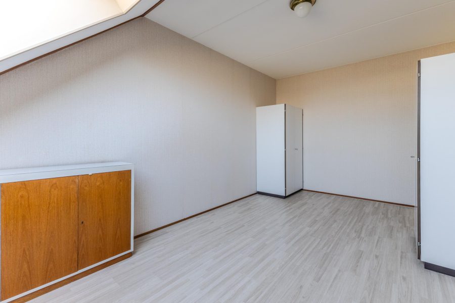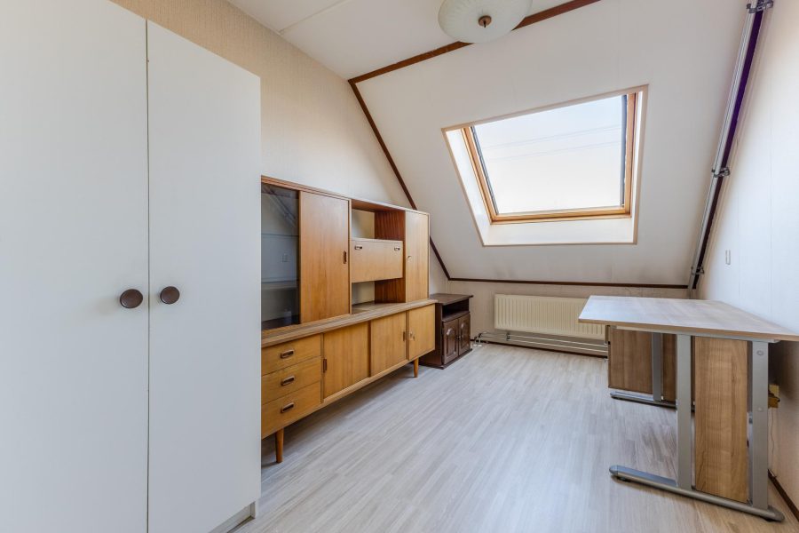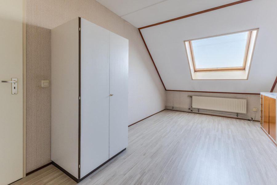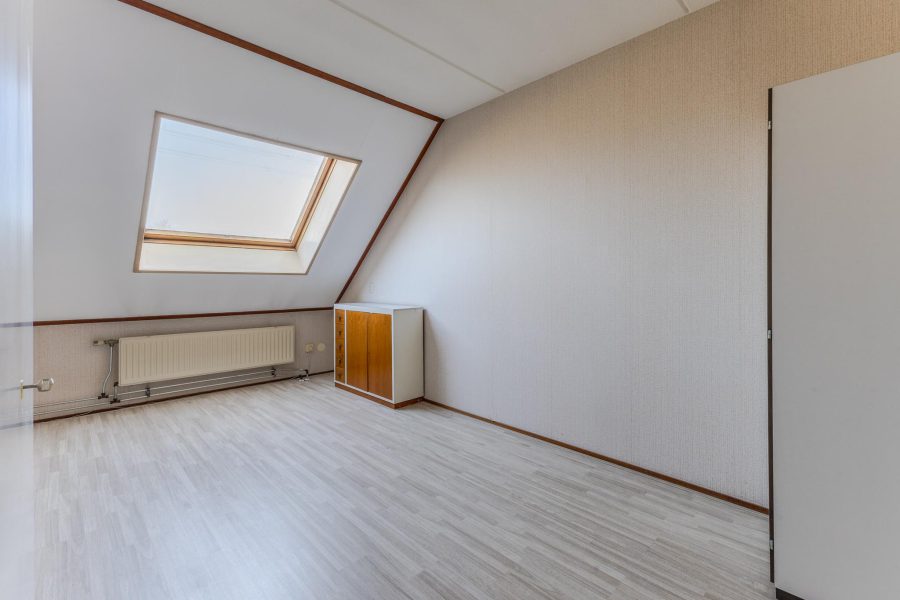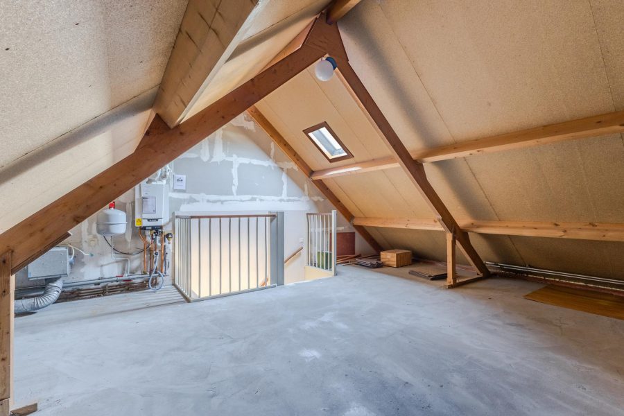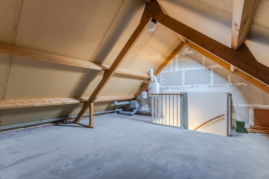Via een vaste trap bereik je de zolderverdieping. Deze verdieping biedt de mogelijkheid voor een vierde slaapkamer, werkkamer of hobbykamer. De verdieping is uit te breiden met een dakkapel. Je vindt er nu de technische installatie en bergruimte.