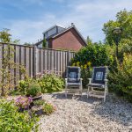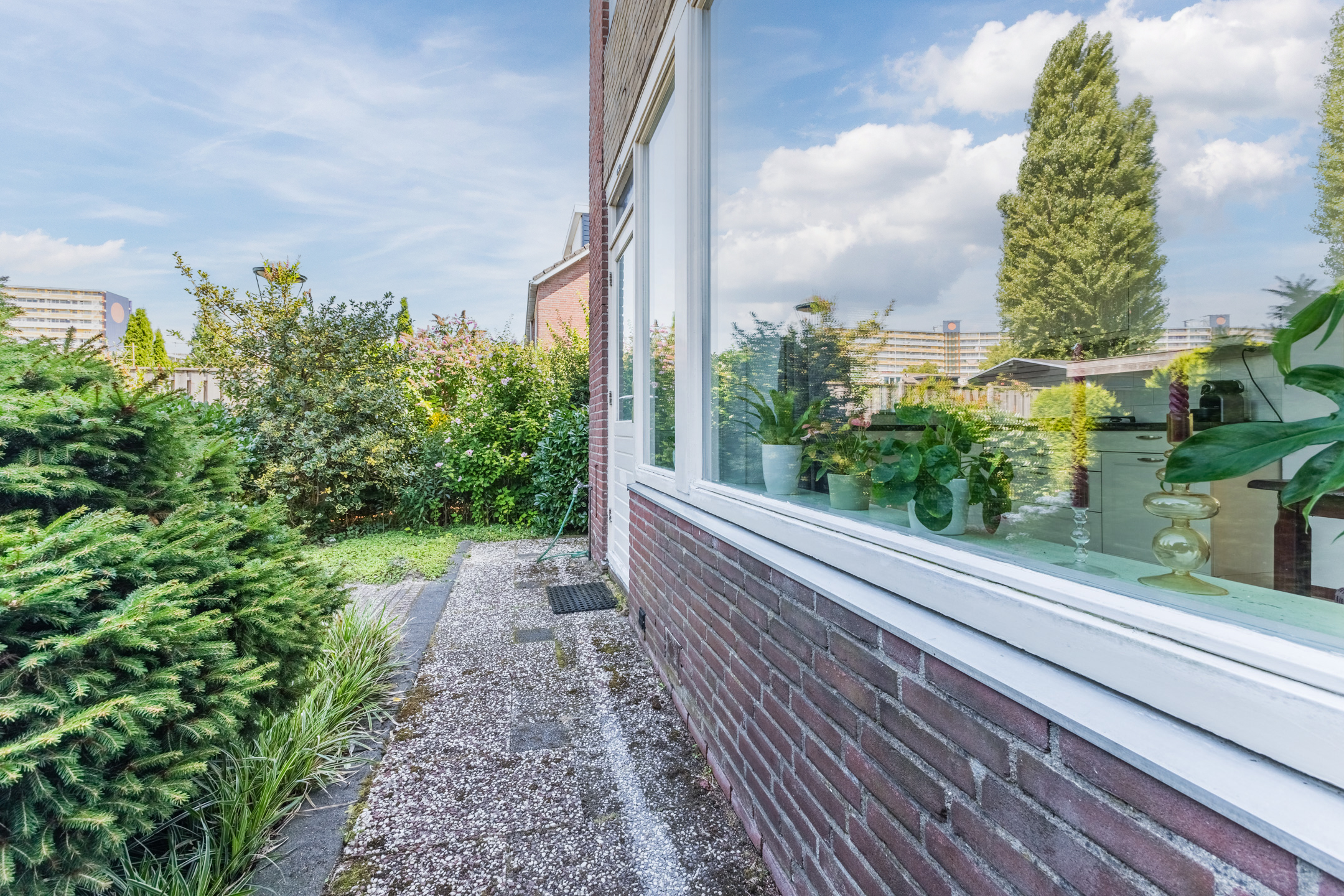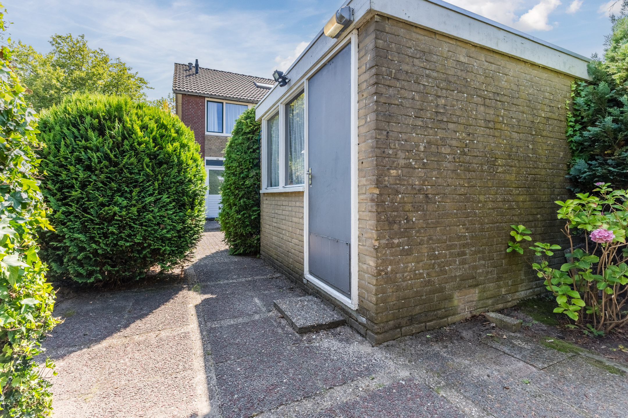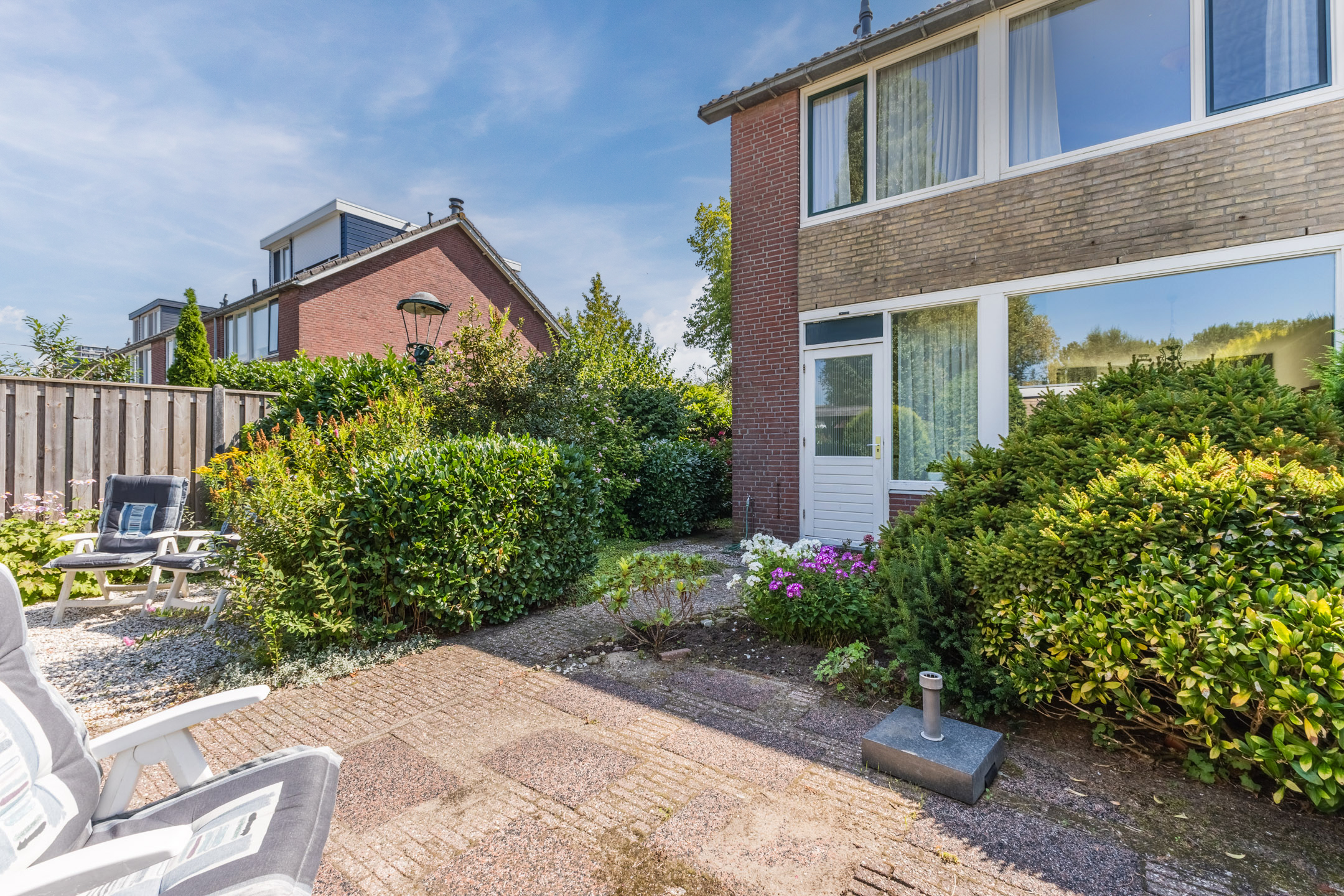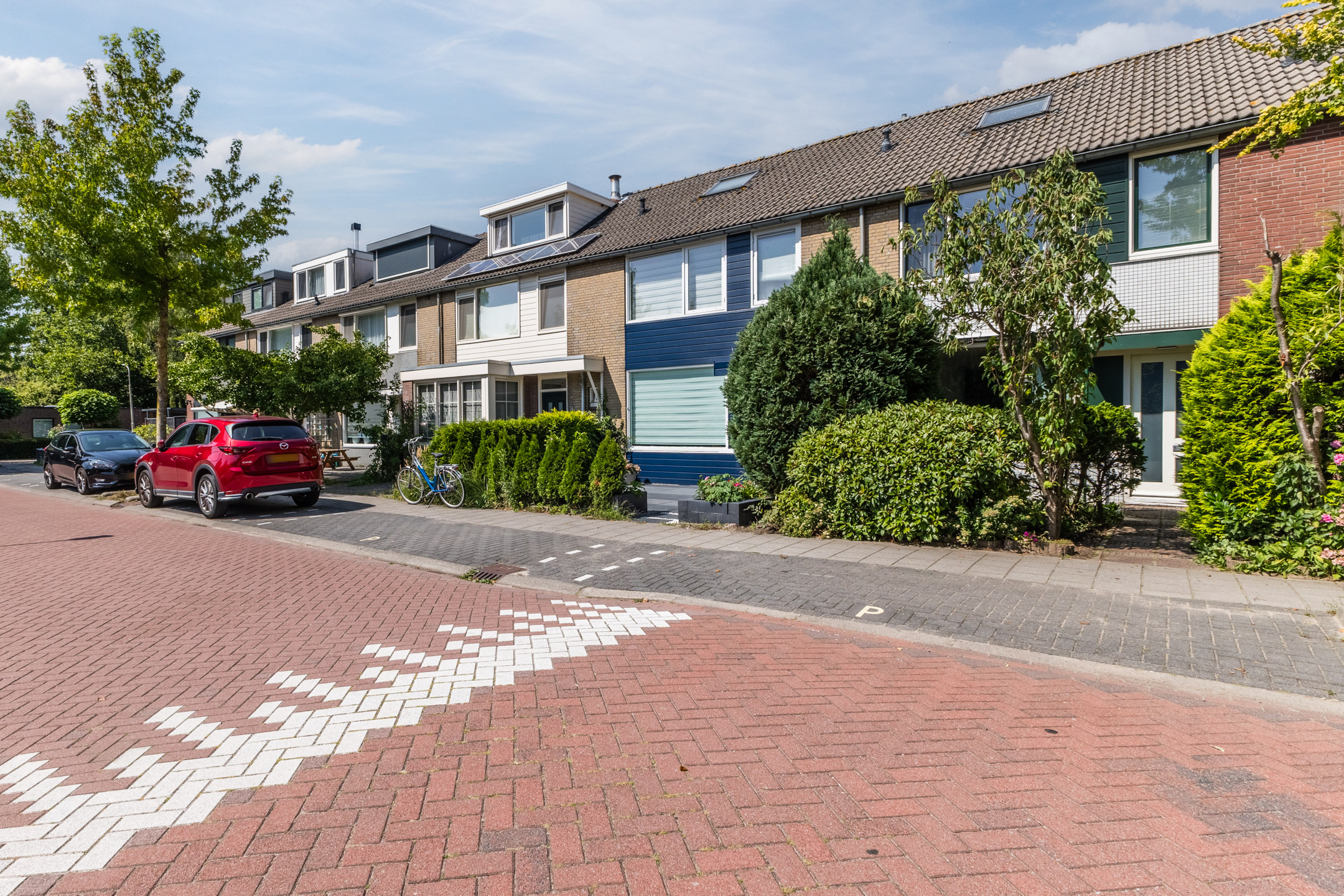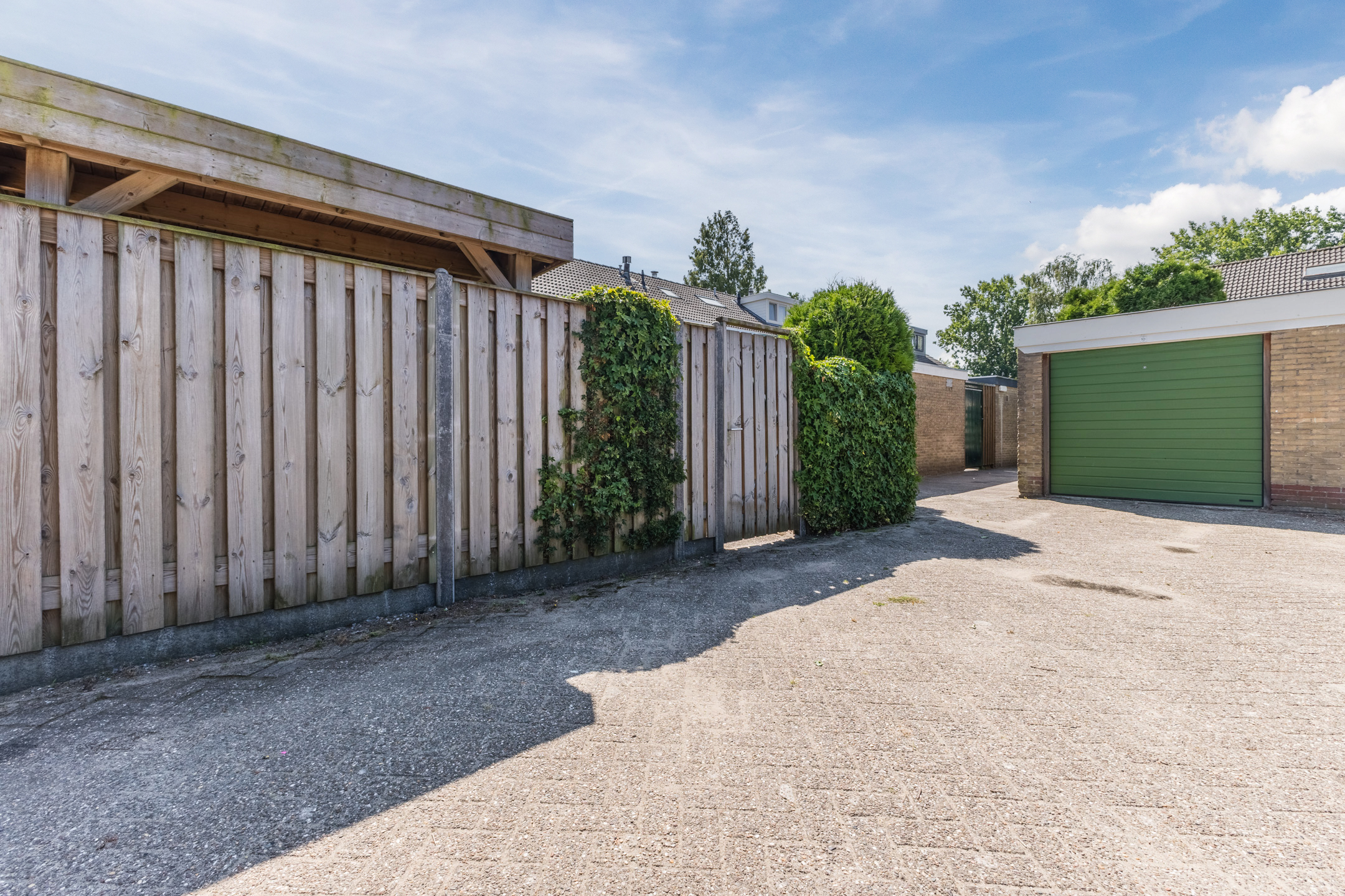 De woning beschikt over een diepe en sfeervol aangelegde achtertuin, met een combinatie van groen, tegels en siergrind. Dankzij de beschutte ligging kun je hier in alle rust genieten van de zon. Achterin de tuin staat een royale houten overkapping, perfect voor een gezellige loungehoek of buitendiner. Daarnaast is er een grote berging voor fietsen en tuingereedschap en een achterom voor extra gemak.
