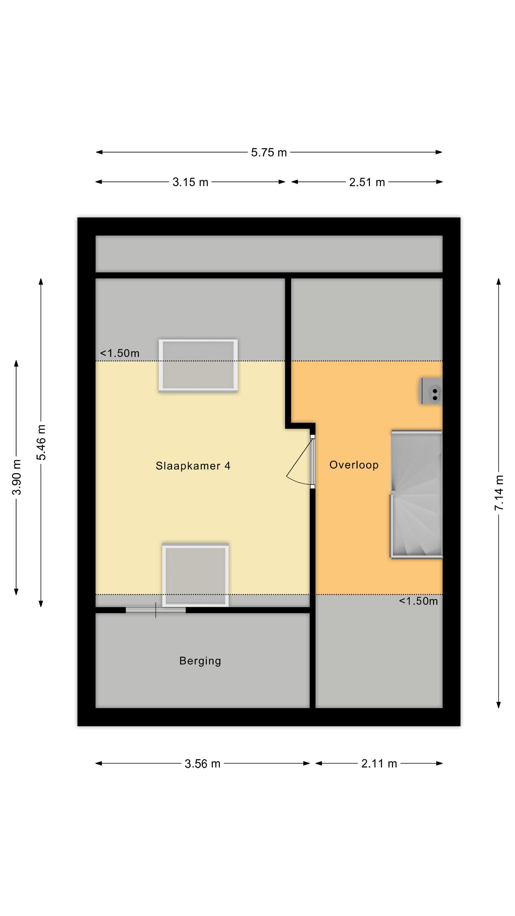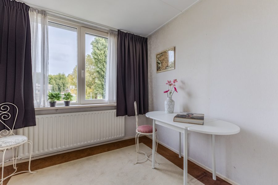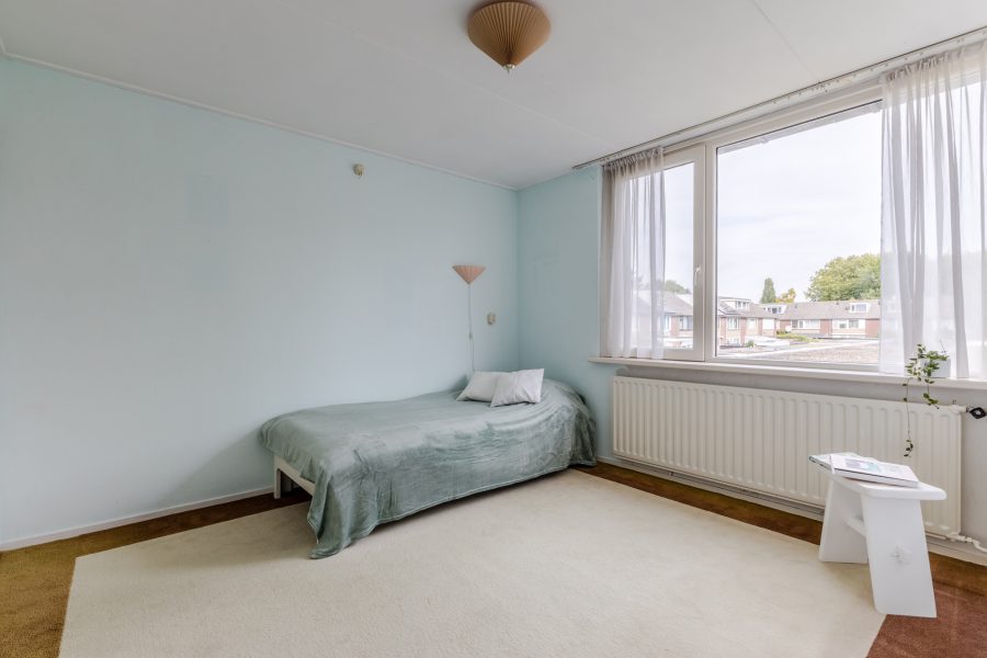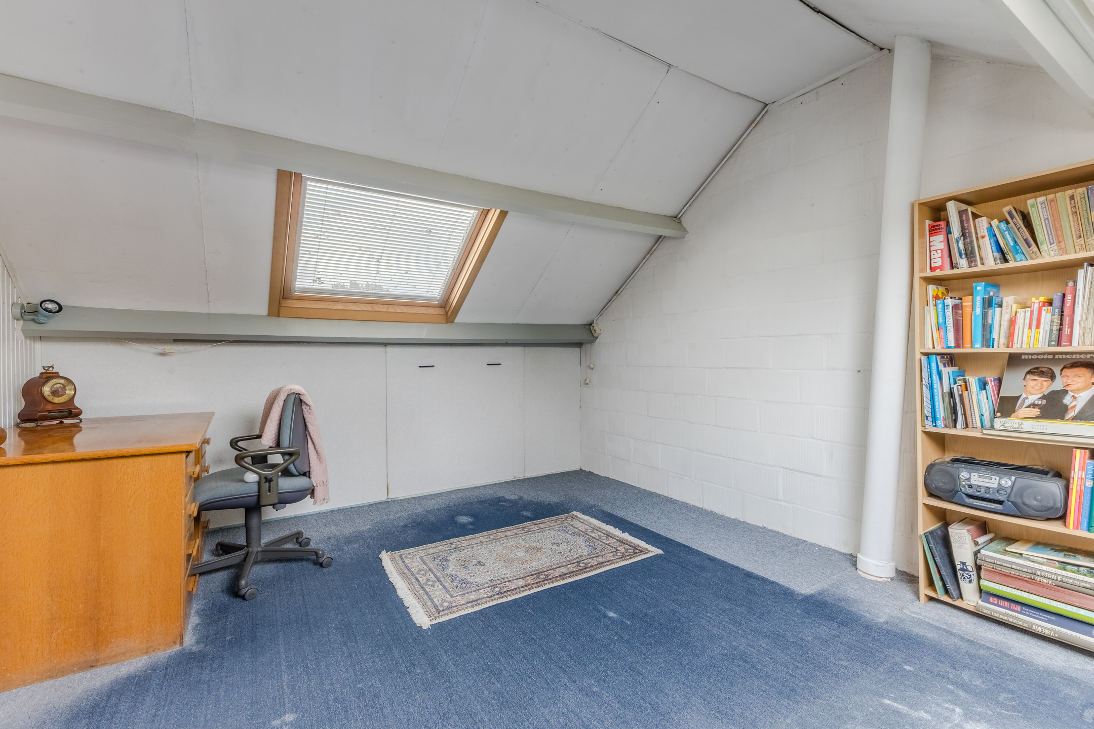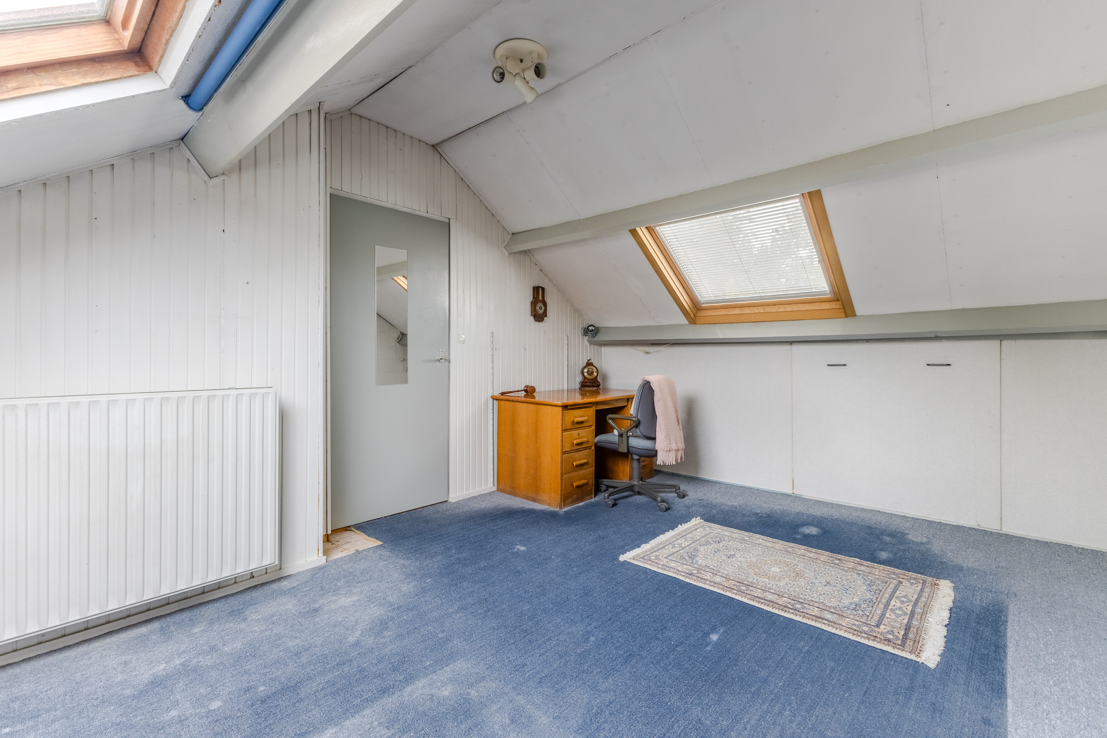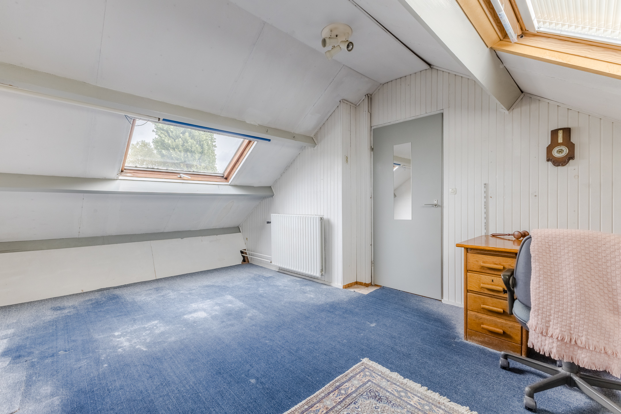 Een vaste trap leidt naar de tweede verdieping. Hier vind je een ruime overloop met cv-installatie en bergruimte, plus de vierde slaapkamer. Deze kamer is royaal van formaat en heeft twee dakramen die voor een fijne lichtinval zorgen. Met het toevoegen van een groot dakkapel aan de achterzijde realiseer je een echte droomslaapkamer. Ook hier is bergruimte aanwezig, ideaal voor koffers of seizoensspullen.