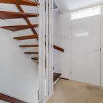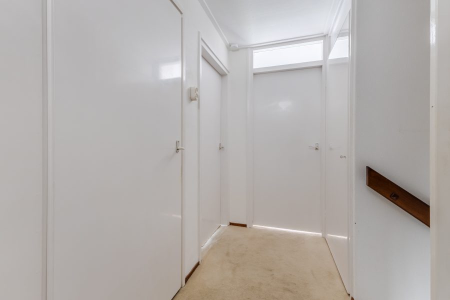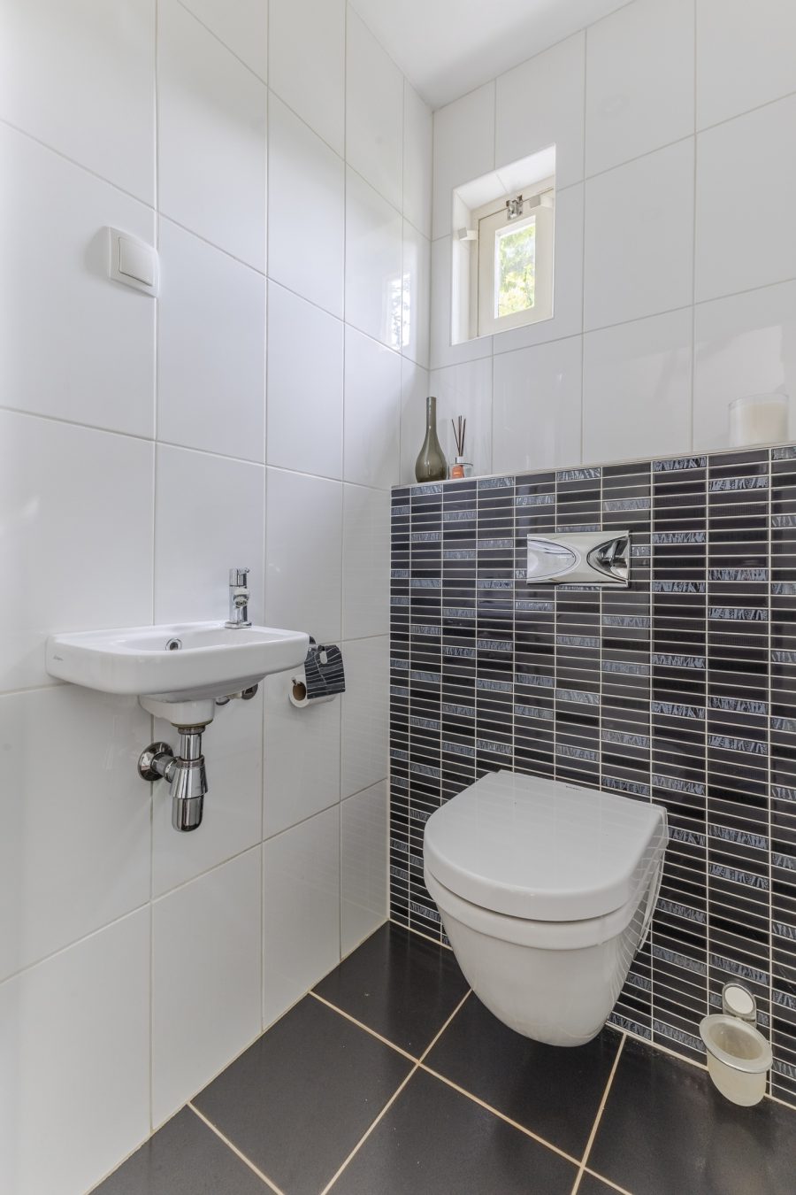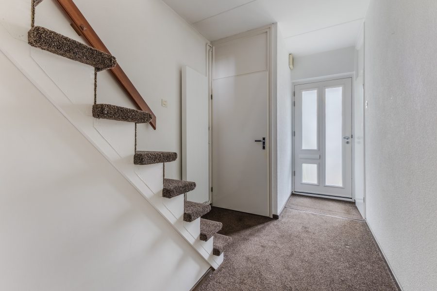 Via de groene voortuin kom je bij de overdekte voordeur van deze fijne hoekwoning. Binnen word je ontvangen in een ruime entreehal met toegang tot de meterkast, een modern toilet met fonteintje, de trapopgang, een handige bergkast en natuurlijk de woonkamer.