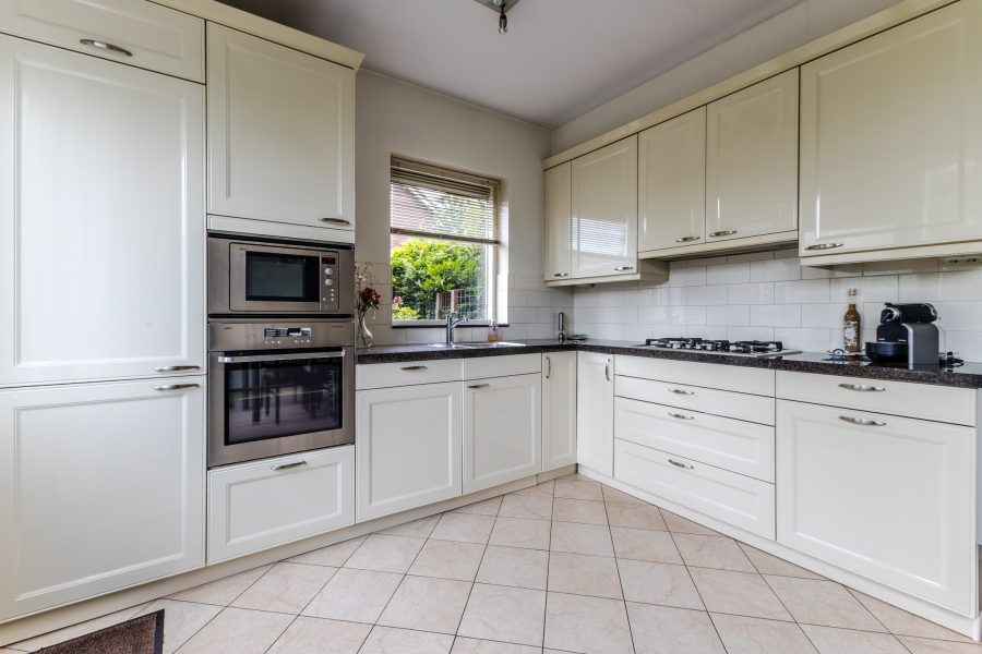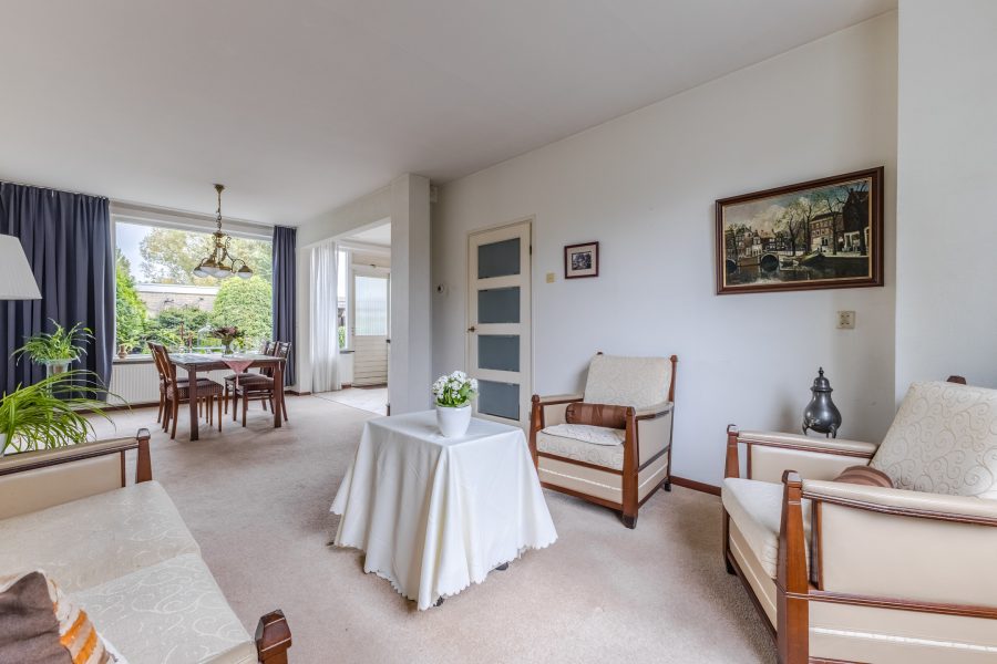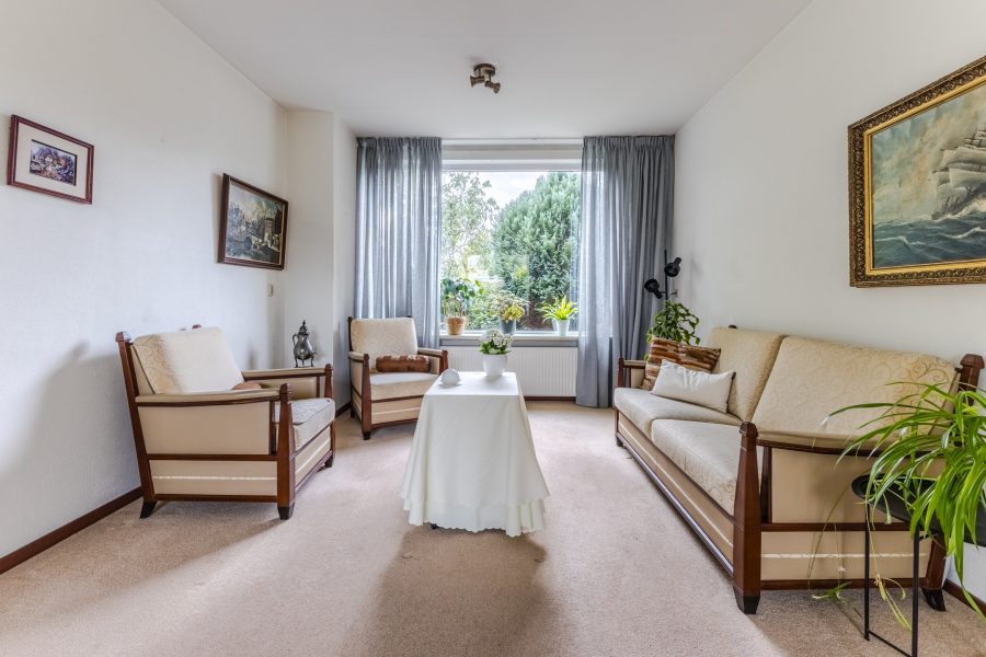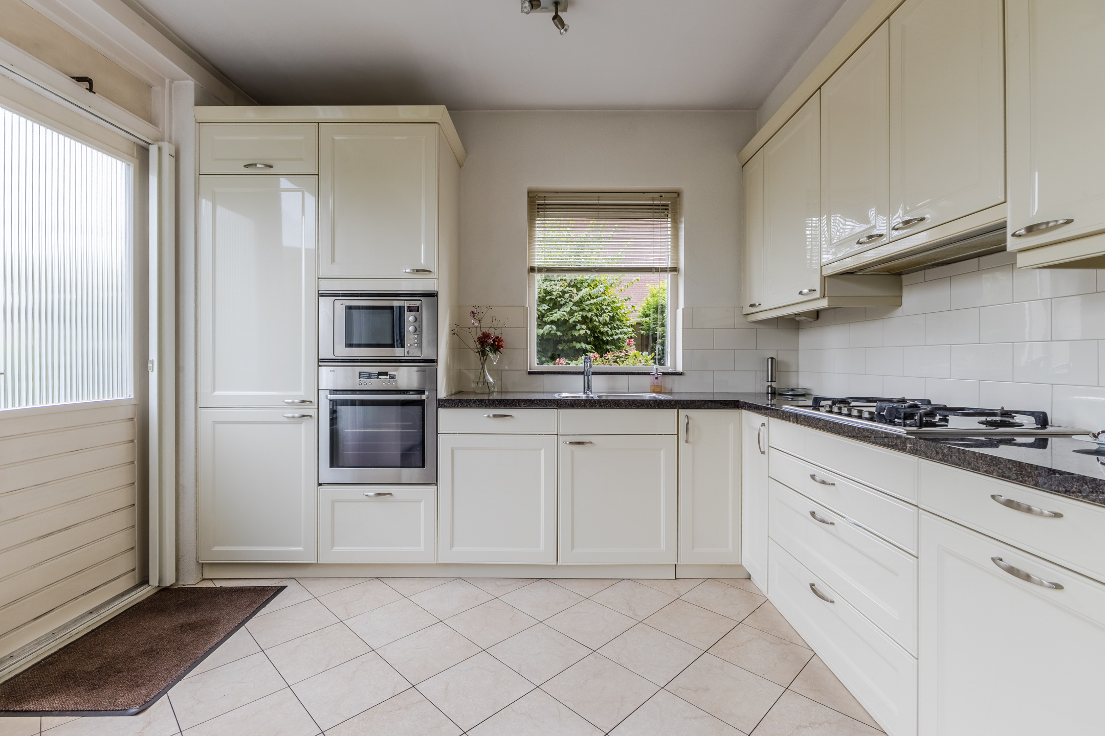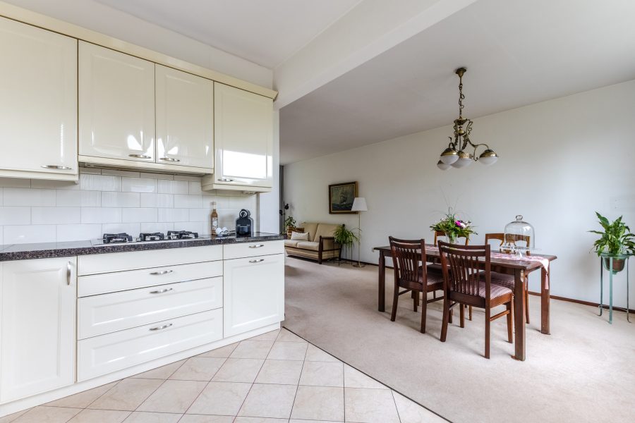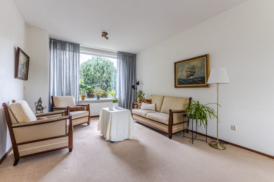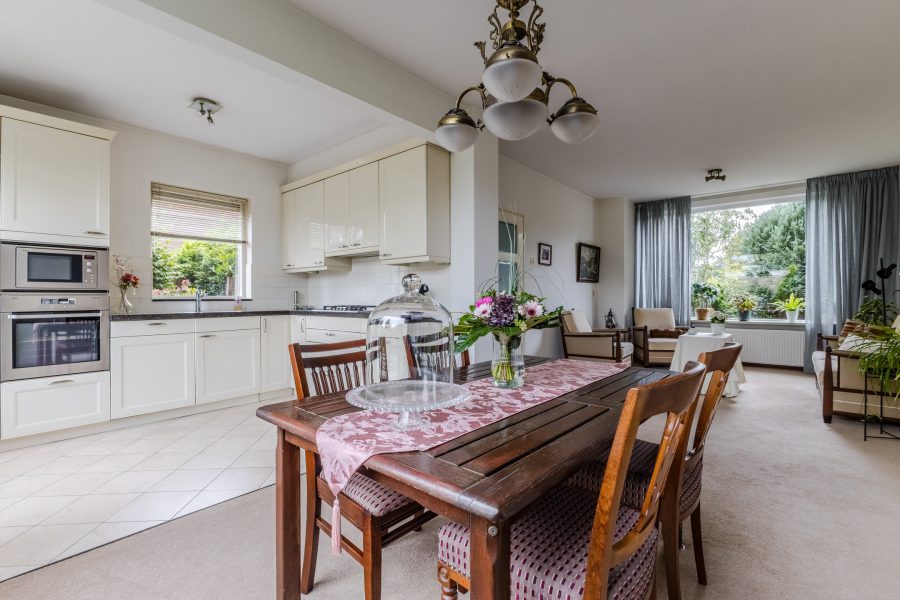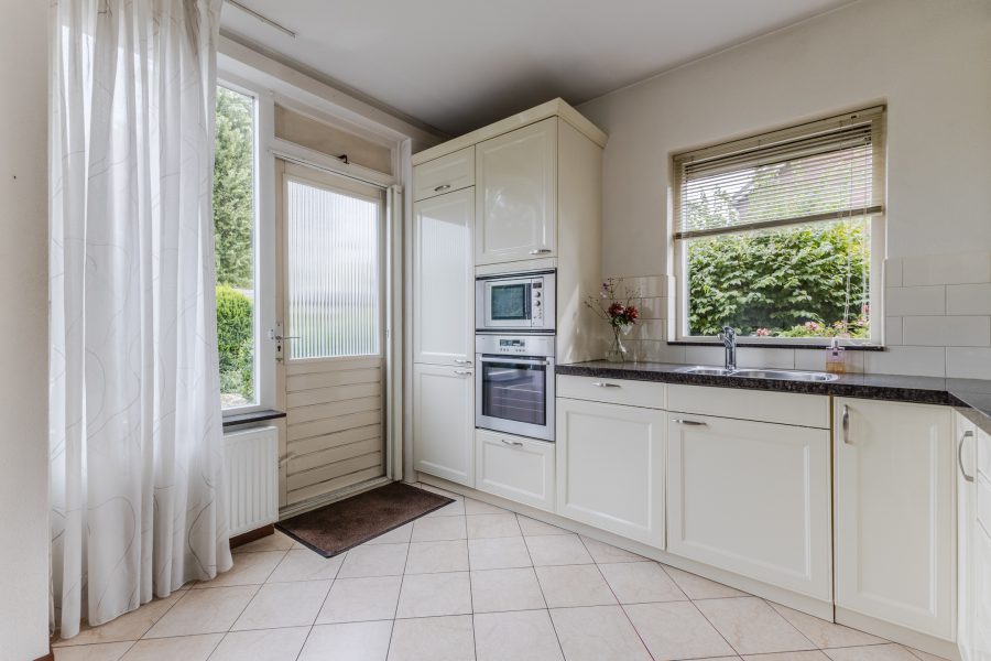 De ruime doorzonwoonkamer is heerlijk licht dankzij de brede raampartijen aan zowel de voor- als achterzijde. Hier geniet je de hele dag van zon en uitzicht op groen. Aan de achterzijde bevindt zich de open keuken in hoekopstelling, voorzien van diverse inbouwapparatuur zoals een vaatwasser, oven, magnetron, gasfornuis, koelkast en vriezer. Via de openslaande deur stap je zo de achtertuin in – ideaal voor zomerse dagen.