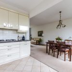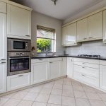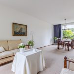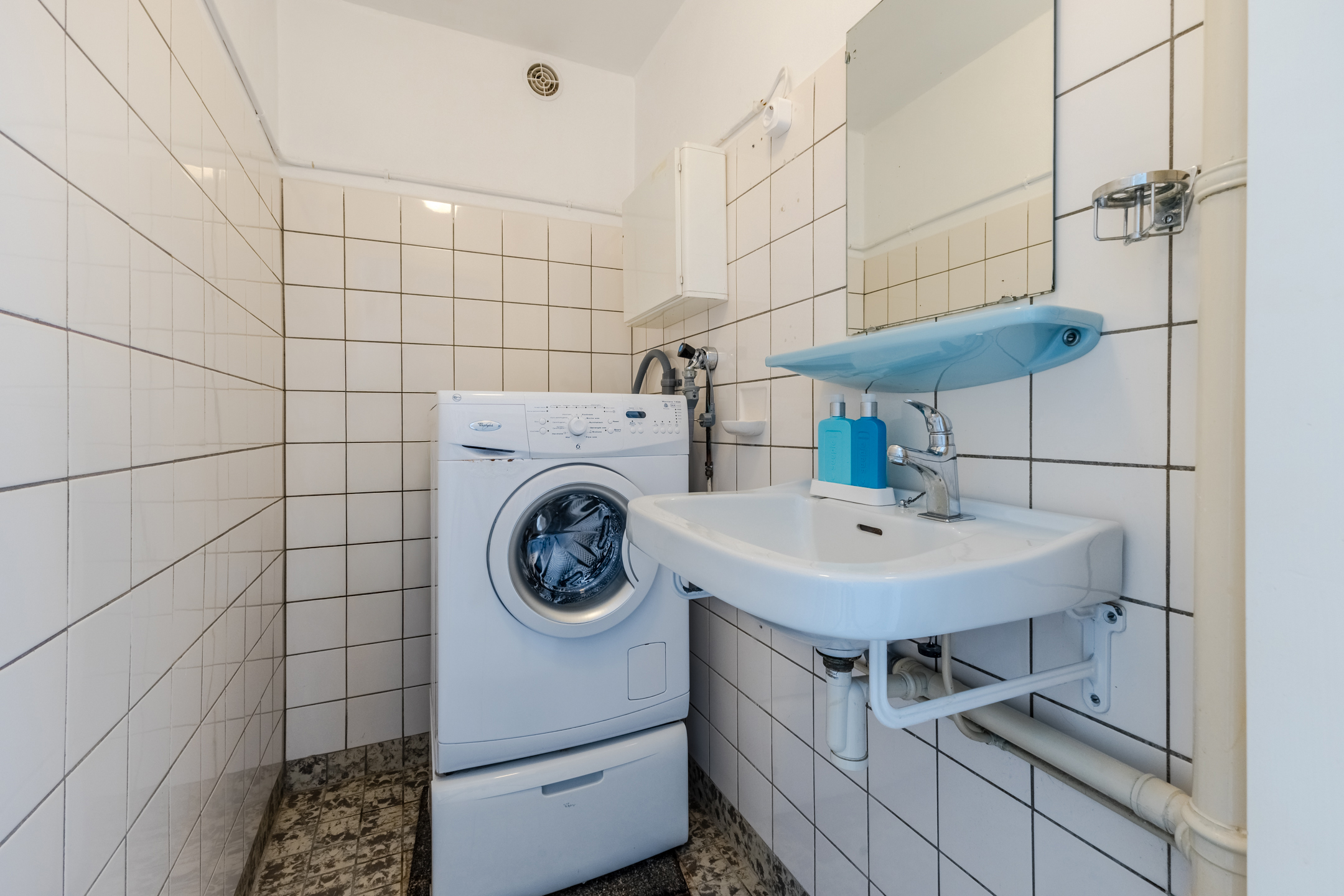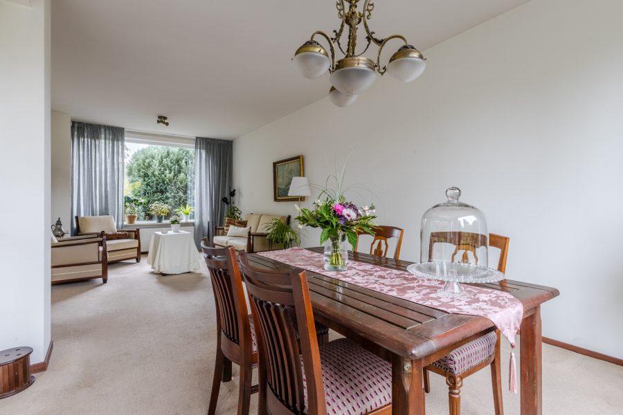 The spacious through-living room is wonderfully bright thanks to the wide windows at both the front and rear. Here you can enjoy daylight and green views all day long. At the back you’ll find the open corner kitchen, equipped with built-in appliances such as a dishwasher, oven, microwave, gas stove, refrigerator and freezer. French doors open directly into the backyard – perfect for summer days.