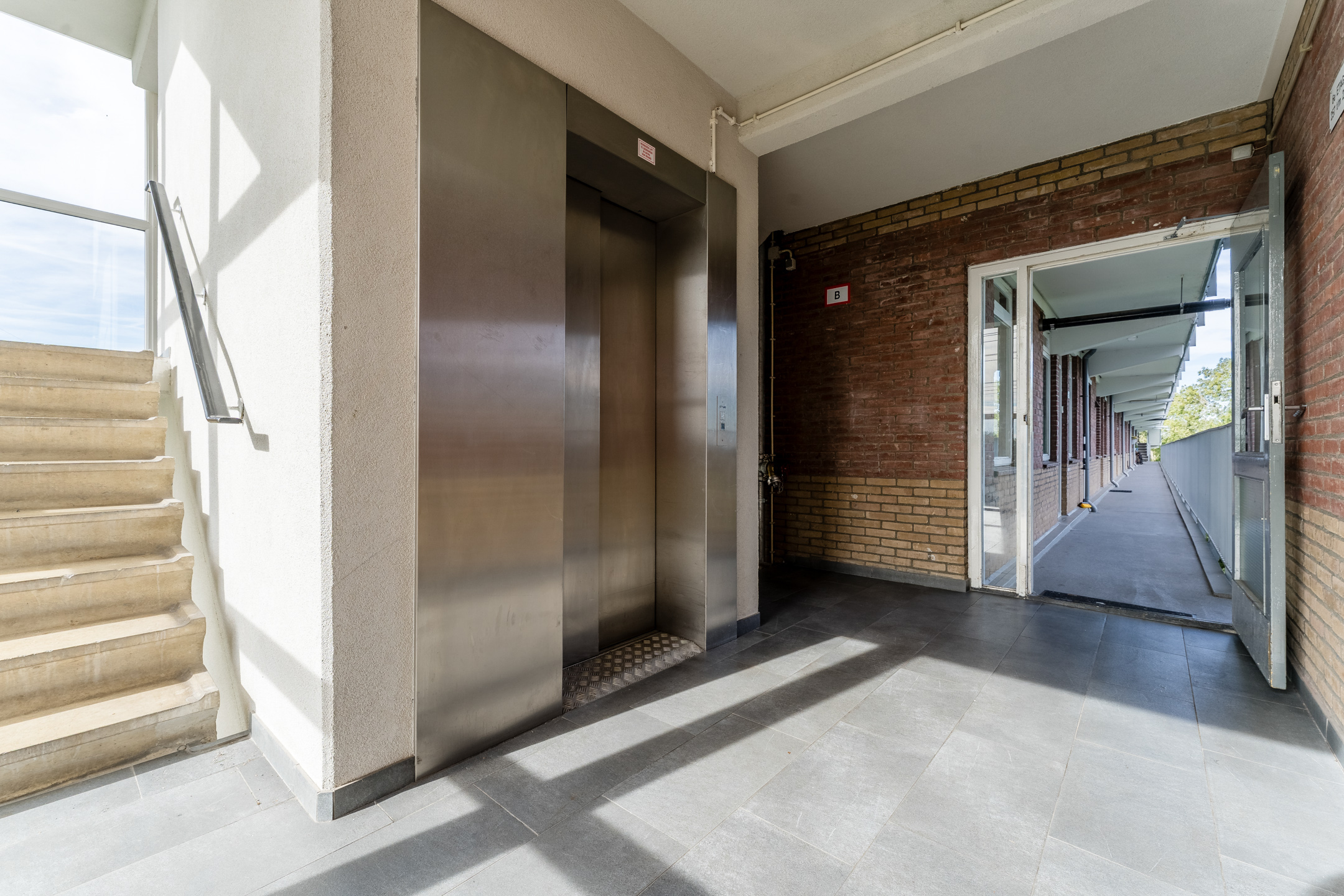 Centrale entree met trappenhuis en lift.