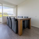 Achter de voordeur van het appartement bevindt zich een langwerpige entreehal, die toegang biedt tot meerdere vertrekken. In het gehele appartement, met uitzondering van de badkamer, ligt een fraaie laminaatvloer. De woon- en eetkamer zijn ruim opgezet en voorzien van strakke wanden. Beide ruimtes genieten dankzij een grote raampartij van een geweldige lichtinval. De eetkamer heeft een openslaande deur naar het balkon.