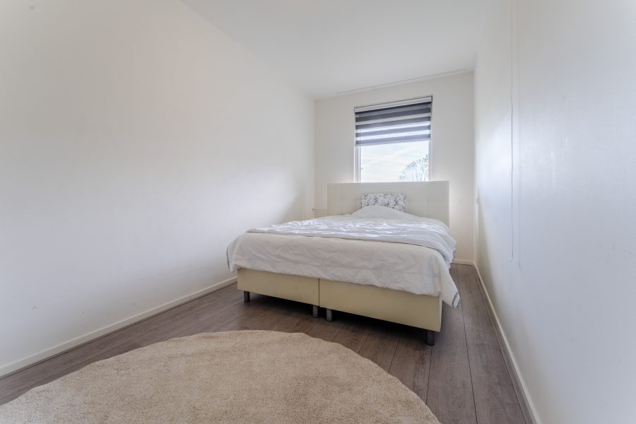 Het overdekte balkon is nog volledig naar eigen smaak aan te leggen. Hier geniet je van het lekkere weer en van het mooie uitzicht op de groene omgeving. Het appartement telt twee slaapkamers. Beide kamers zijn ruim van formaat, strak afgewerkt en heerlijk licht.