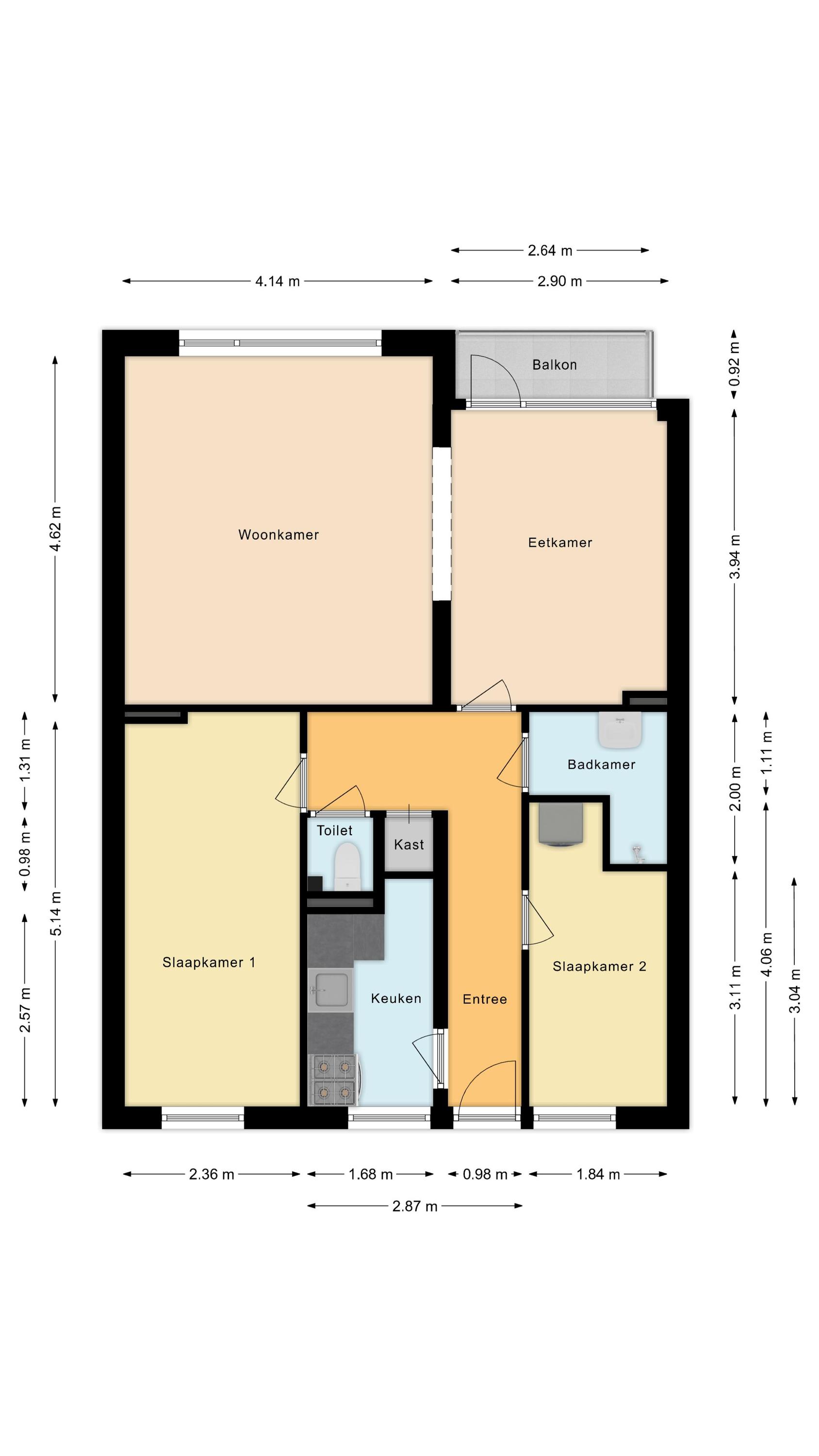 Indeling van het appartement:
