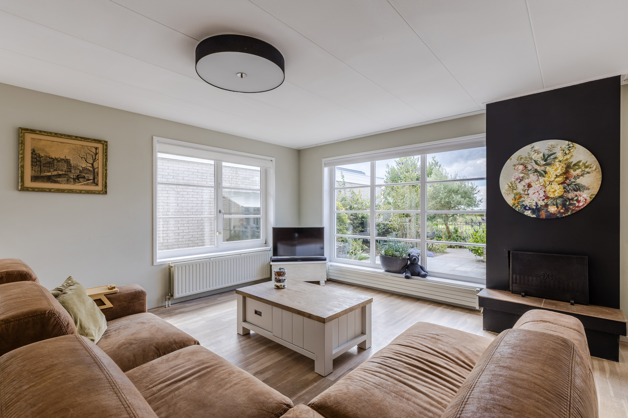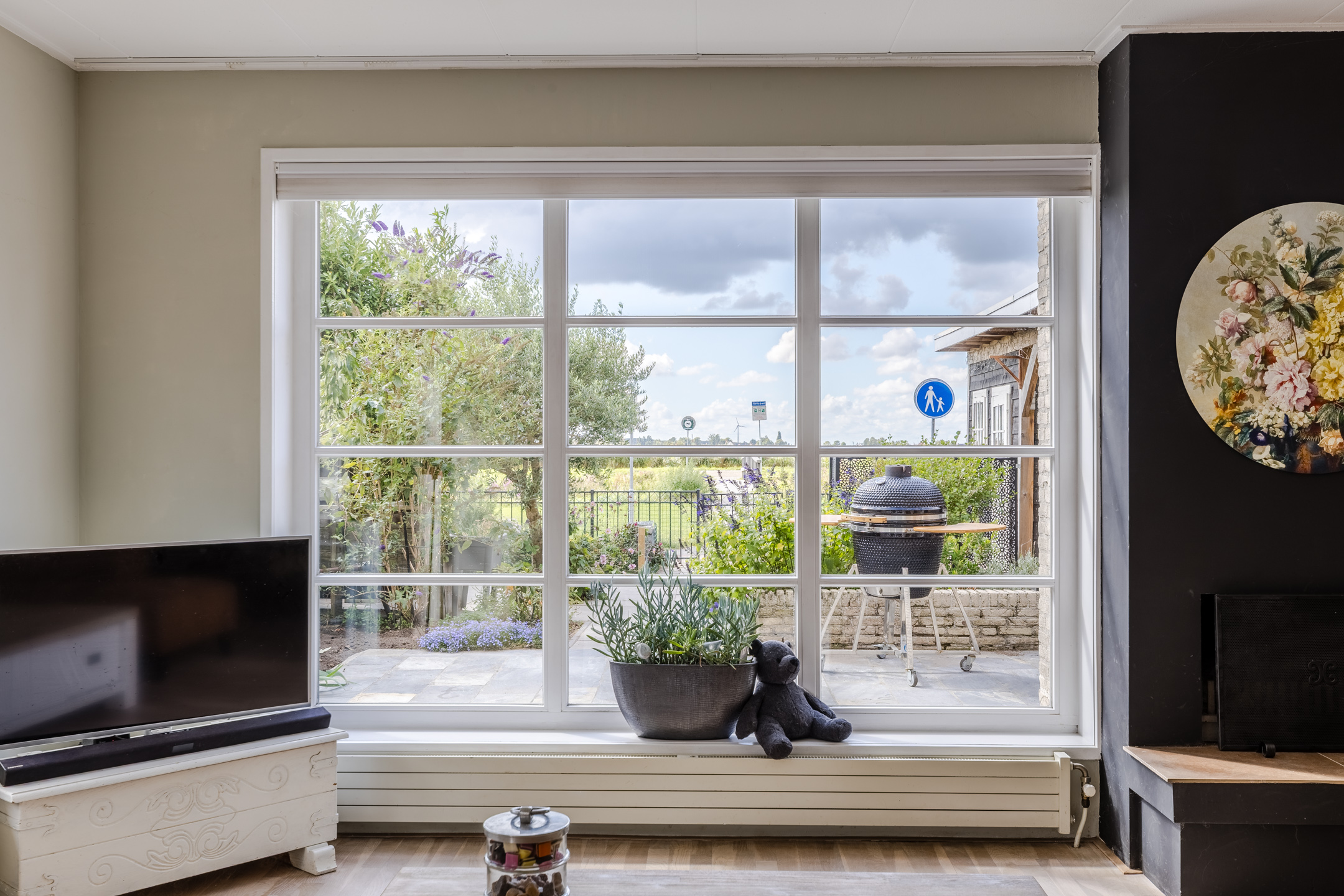• Royale woonkamer met grote ramen en openslaande tuindeuren