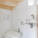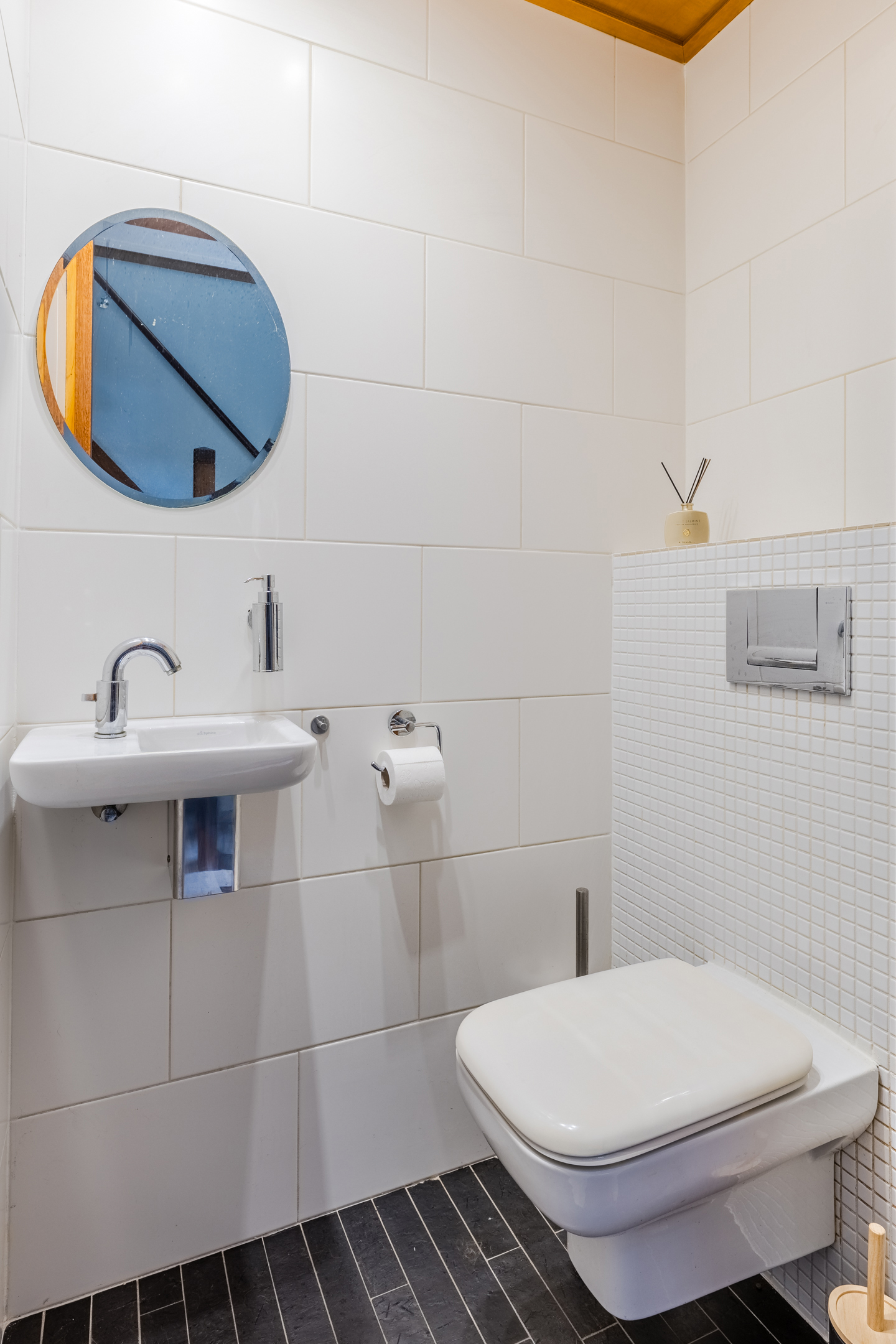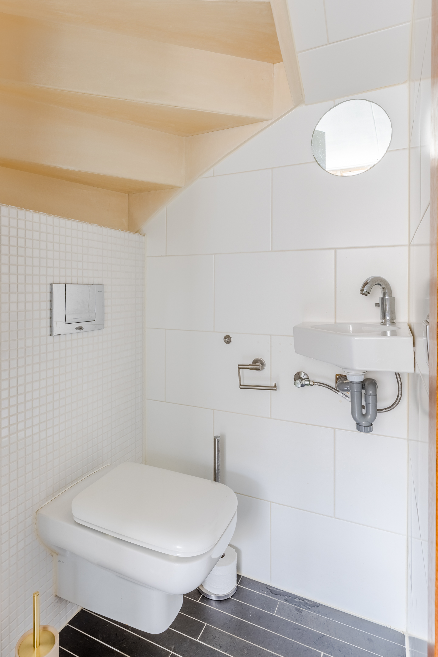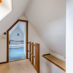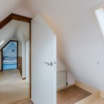 The stairs in the entrance hall leads to the spacious landing on this floor. Here you will find four bedrooms, a toilet room with a floating toilet and sink, and the bathroom. The rooms are spacious and wonderfully light.