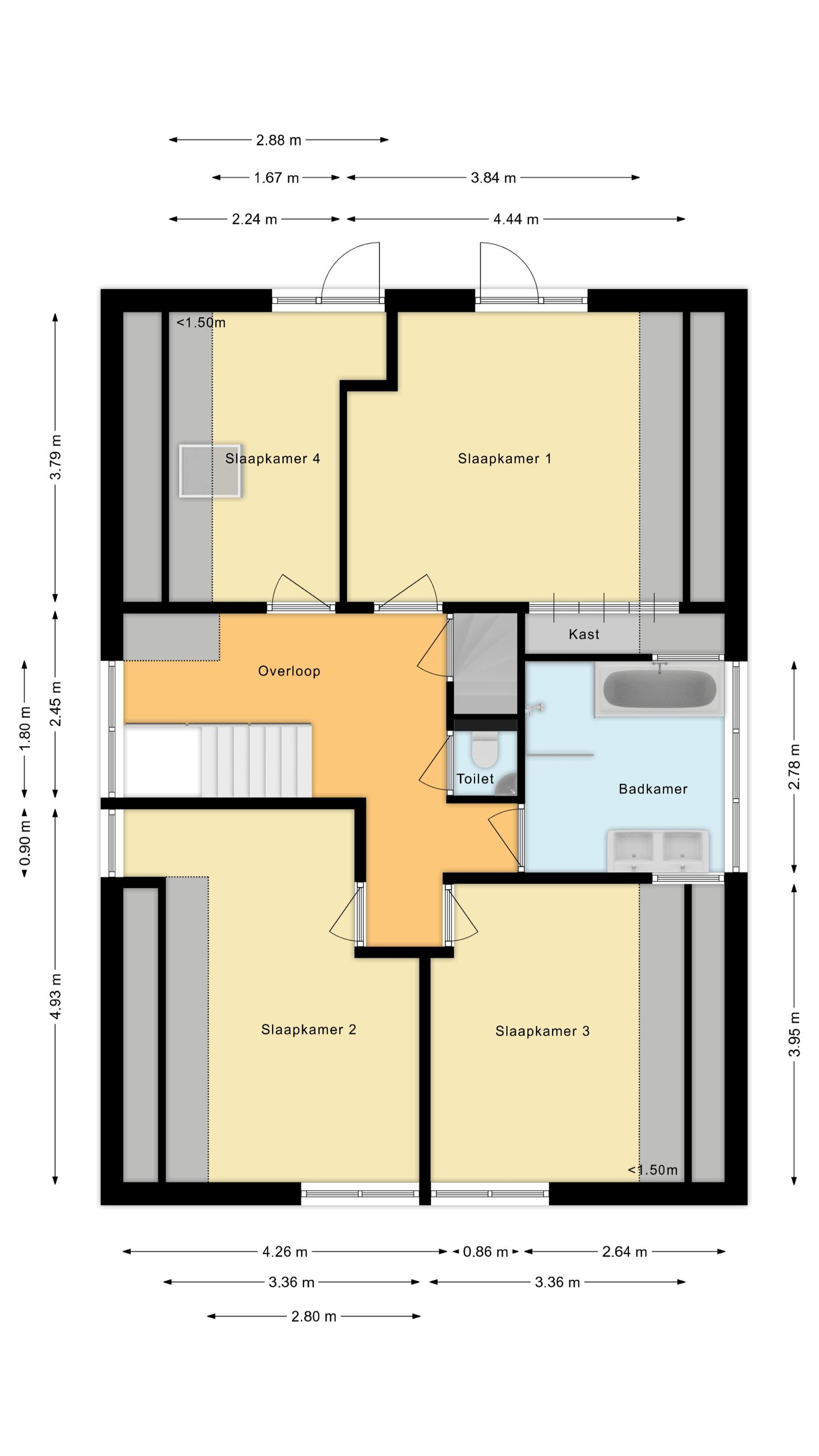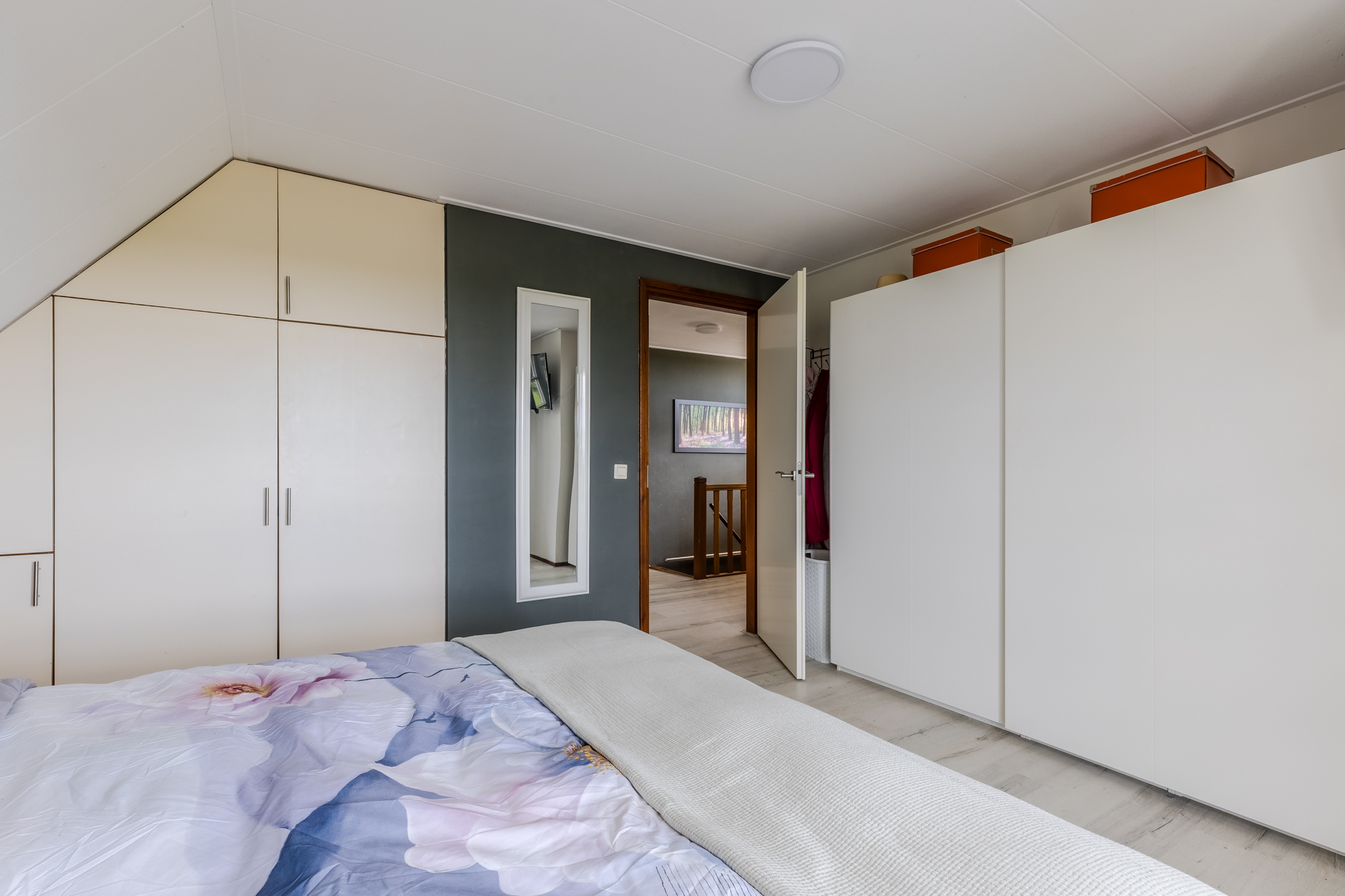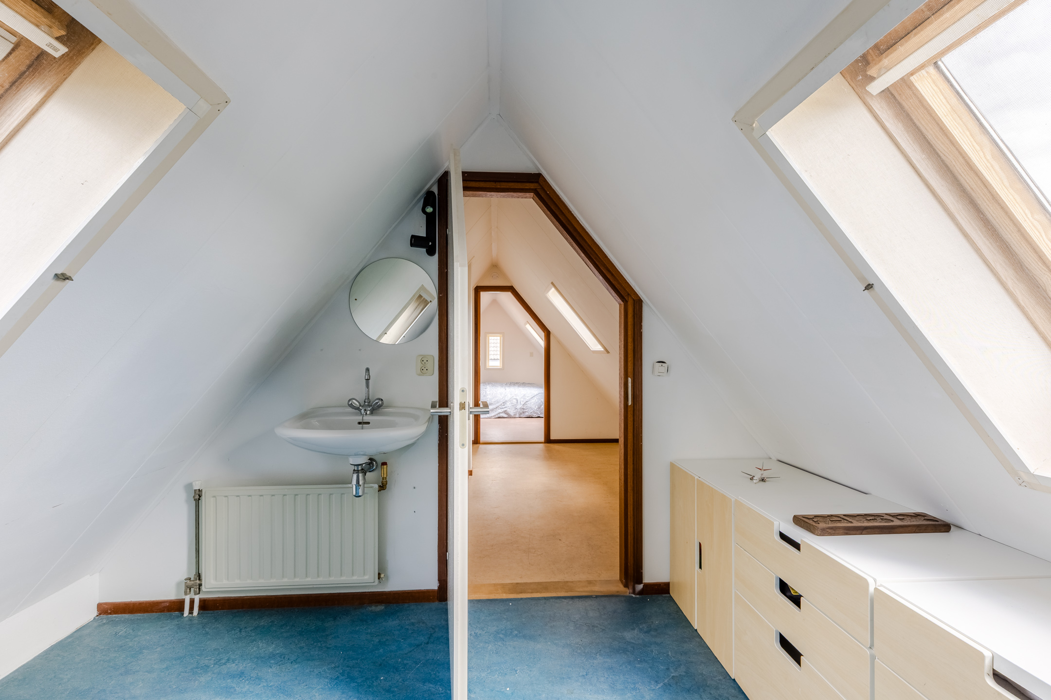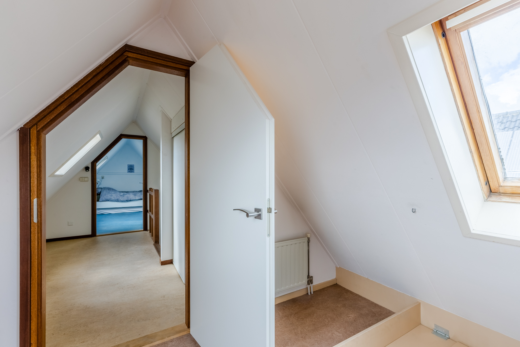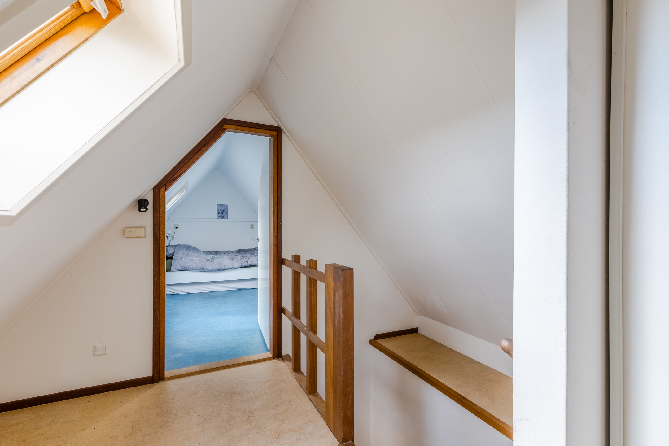 Via de trap in de entreehal bereik je de ruime overloop van deze verdieping. Hier tref je vier slaapkamers, een toiletruimte met zwevend toilet en fonteintje, en de badkamer aan. De kamers zijn ruim opgezet en heerlijk licht.