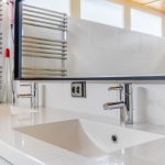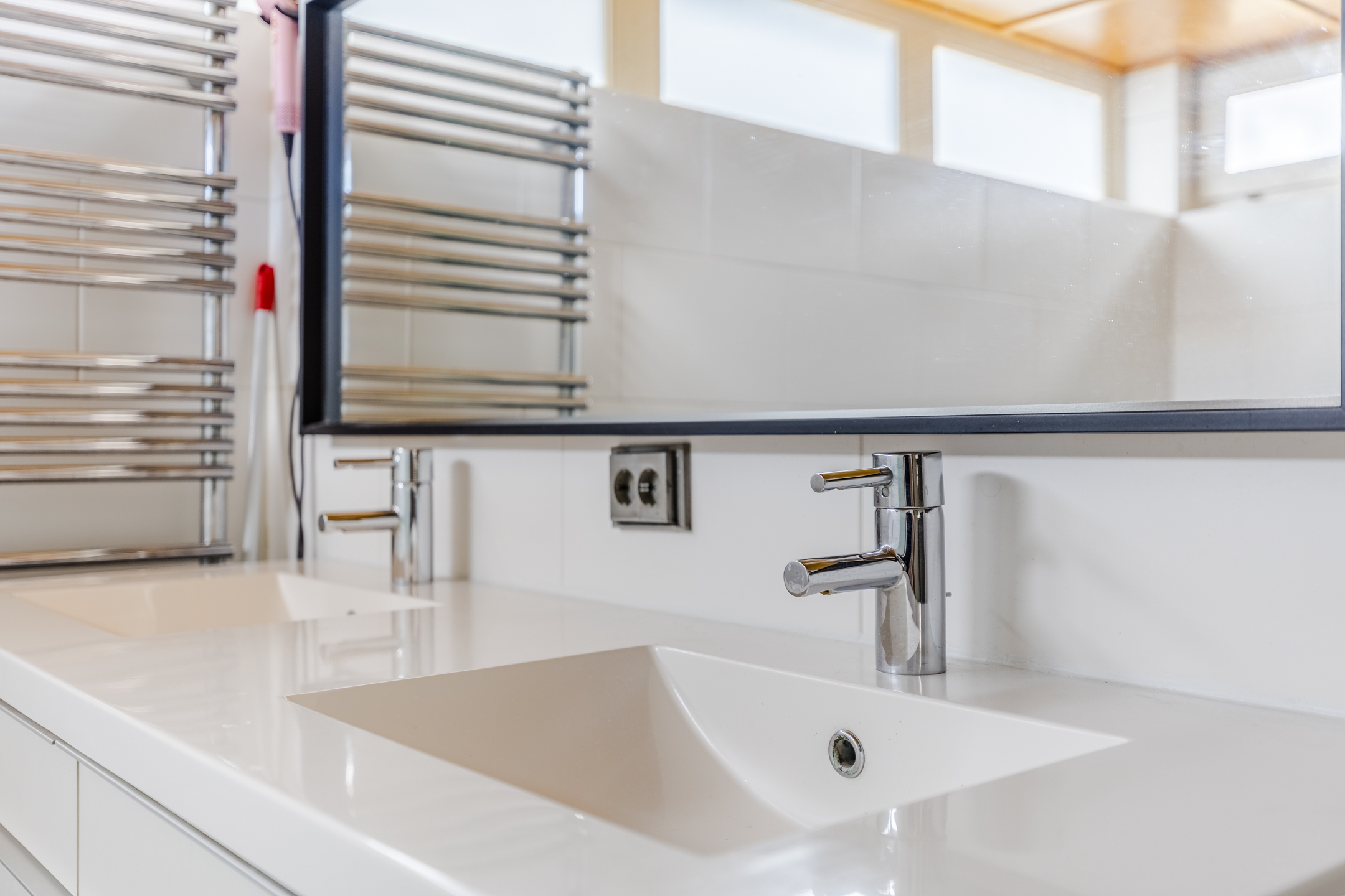 • Nette badkamer met dubbele wastafel, ligbad en inloopdouche