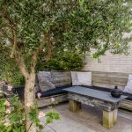What a wonderful garden this is! This deep garden is beautifully landscaped with both tiles and greenery. There is more than enough space to lounge outside. It is well sheltered, giving you plenty of privacy. The garden also has a large wooden canopy, where you can relax under cover. Adjacent to this canopy is a shed, which offers space for your garden equipment and bicycles. The garden is accessible via a back entrance.
