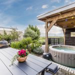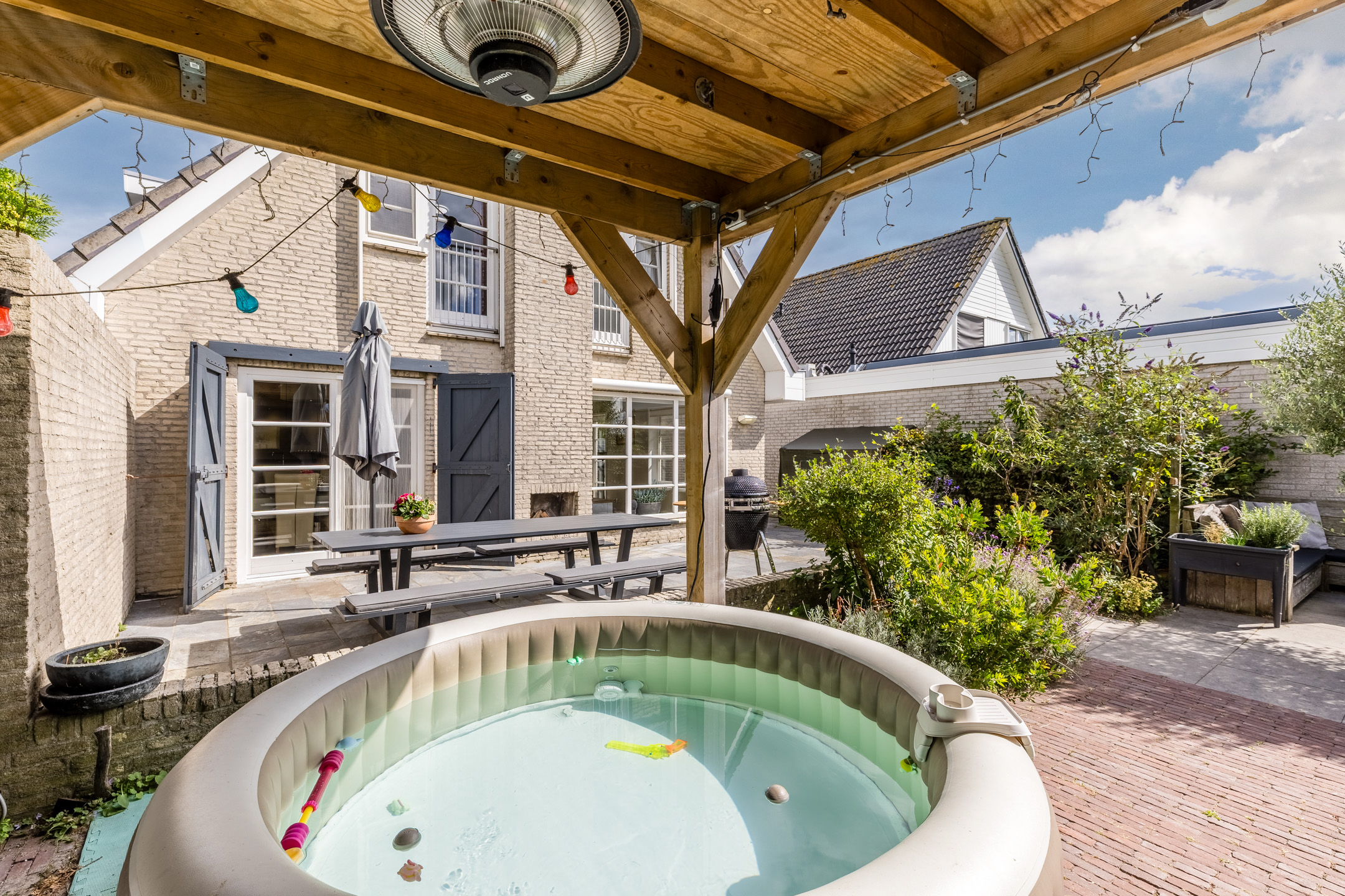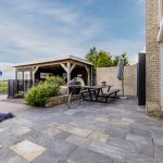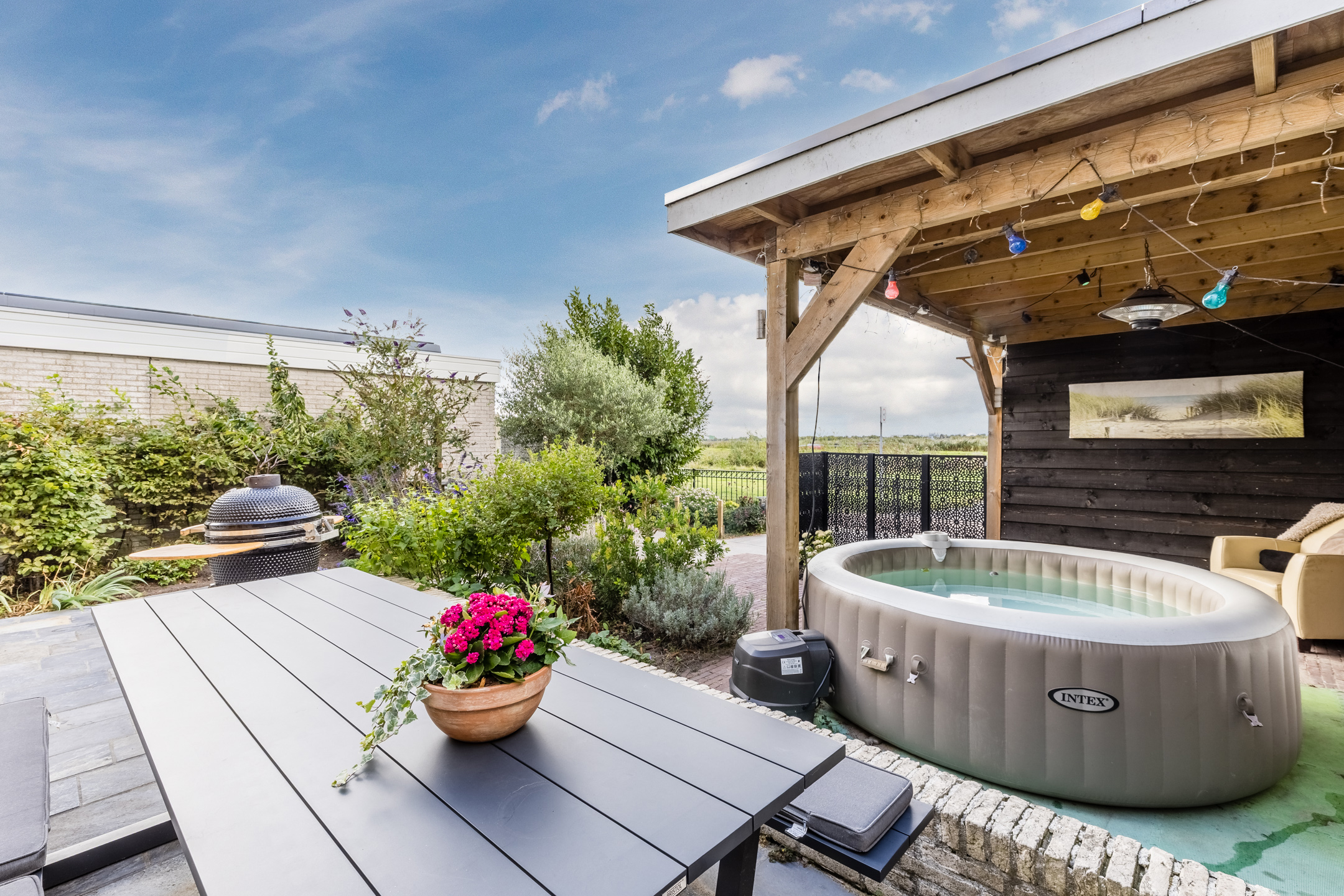 • Fraai aangelegde achtertuin met houten overkapping en berging
