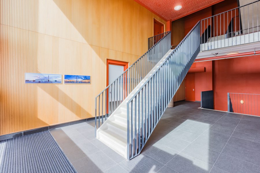 Gesloten entree met bel en intercom. Representatieve gemeenschappelijke hal met trappenhuis en lift.