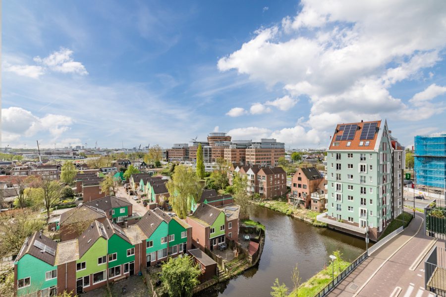 This beautiful apartment (2010) with unobstructed views is located in a particularly appealing location, on the water of the Gedempte Gracht, adjacent to the bustling centre of Zaandam where many restaurants and cafés and various cultural facilities can be found. Of course, not to mention the many shops, including several supermarkets, that you will find here. You will find all this at walking distance!
