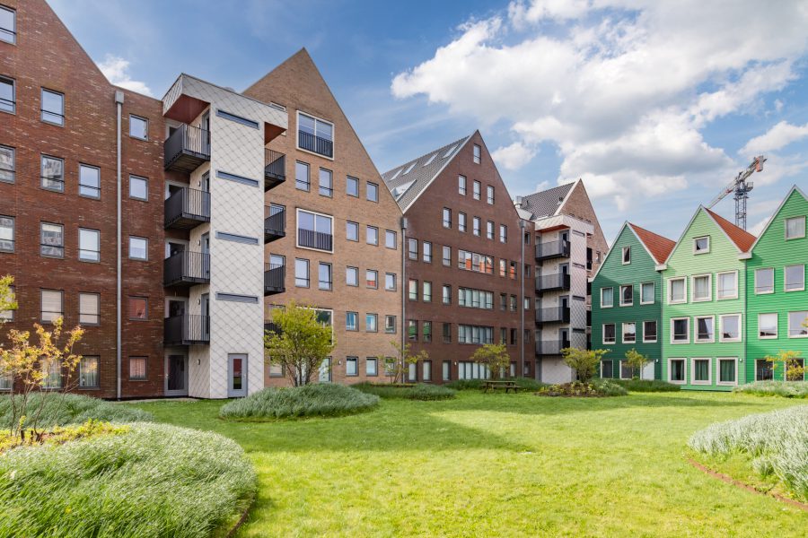 Het appartementencomplex heeft een gemeenschappelijke binnentuin.