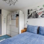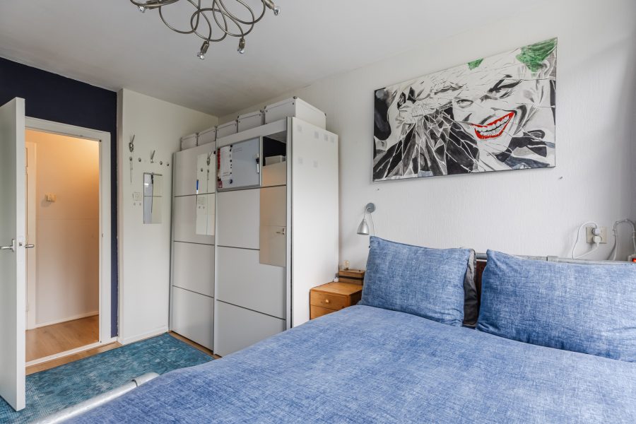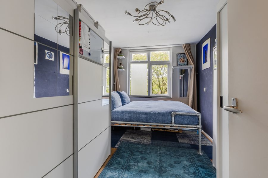 Het appartement beschikt over één slaapkamer. Deze kamer is groot genoeg voor het plaatsen van een tweepersoonsbed. Het grote raam zorgt hier voor een prettige lichtinval. De badkamer is in 2021 vernieuwd en uitgerust met een wastafel en een inloopdouche. Het appartement is voorzien van een separaat toilet.