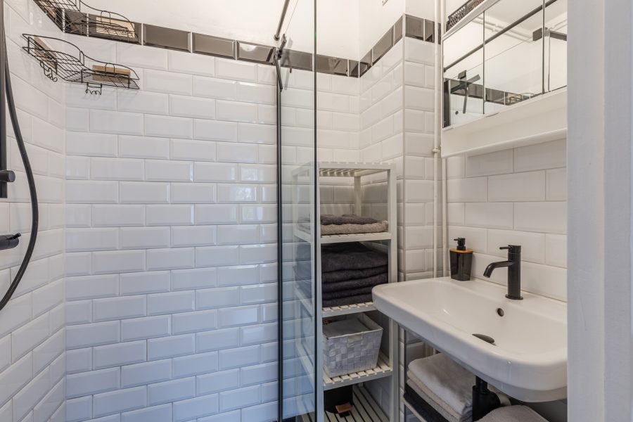 In the apartment you will find one bedroom. This room is large enough for a double bed. The large window provides pleasant natural light. The bathroom was renovated in 2021 and is equipped with a sink and a walk-in shower. The apartment has a separate toilet.