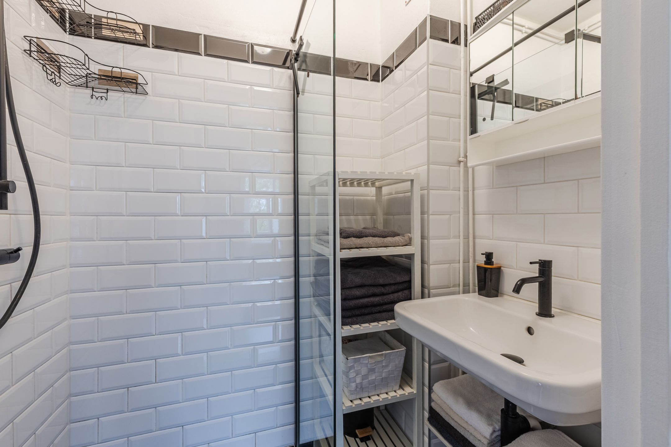 • Neat bathroom with sink and walk-in shower