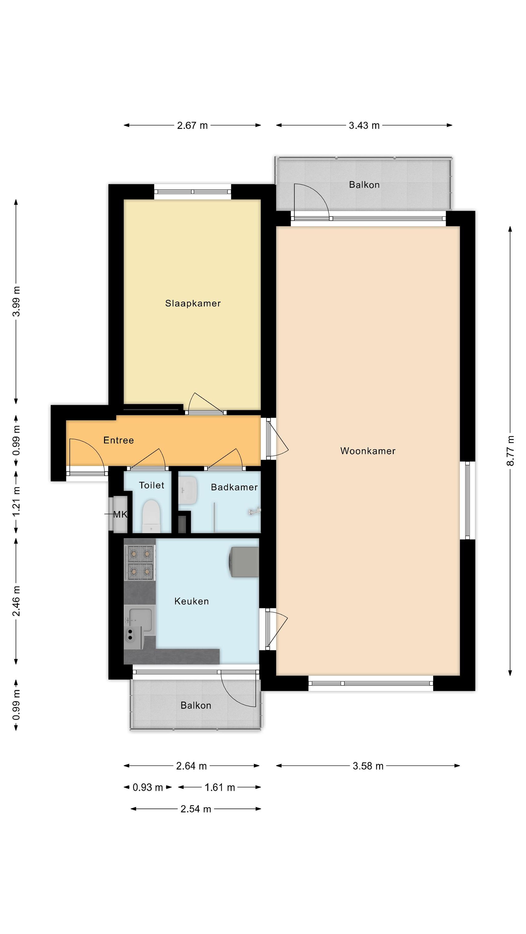 • Fijn 2-kamerappartement met twee balkons