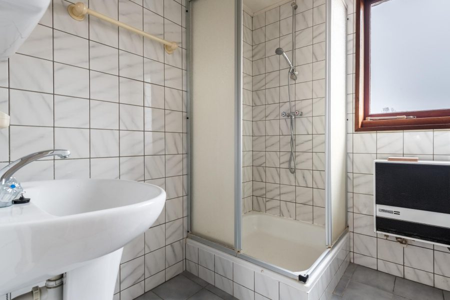 Via the upholstered stairs you reach the landing of this floor. Here you will find two spacious bedrooms and the bathroom. One bedroom is at the front and the second bedroom is at the back, next to the bathroom. The bathroom has a washbasin with mirror and a shower cabin. Panel doors have been retained on this floor.