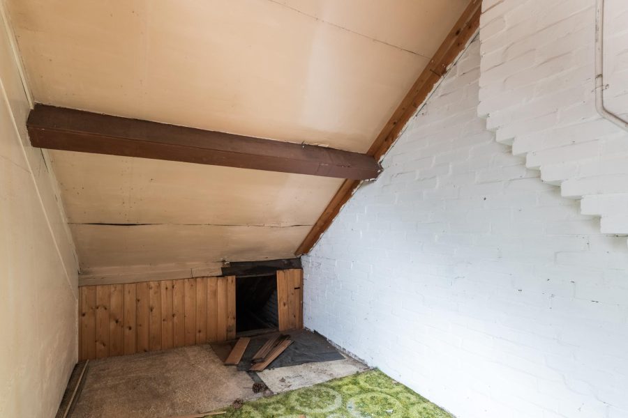 Via een trapje bereik je deze verdieping. Hier is een derde slaapkamer te vinden en nog veel bergruimte. Het daglicht komt hier via een dakraam binnen.