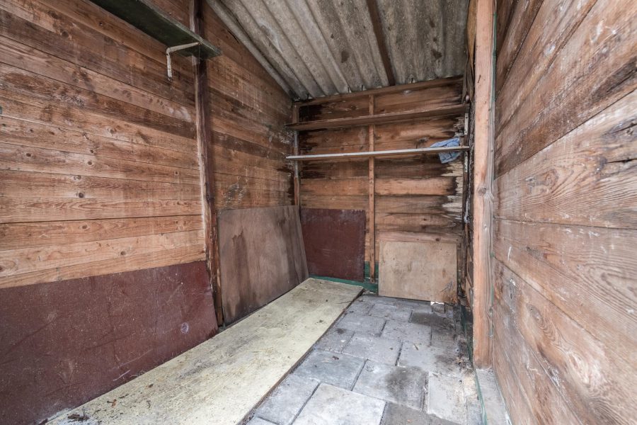 The property has a deep tiled garden with a wooden shed. The garden needs refurbishing, but offers enough space to create a nice lounge area in the future. There is a back entrance.