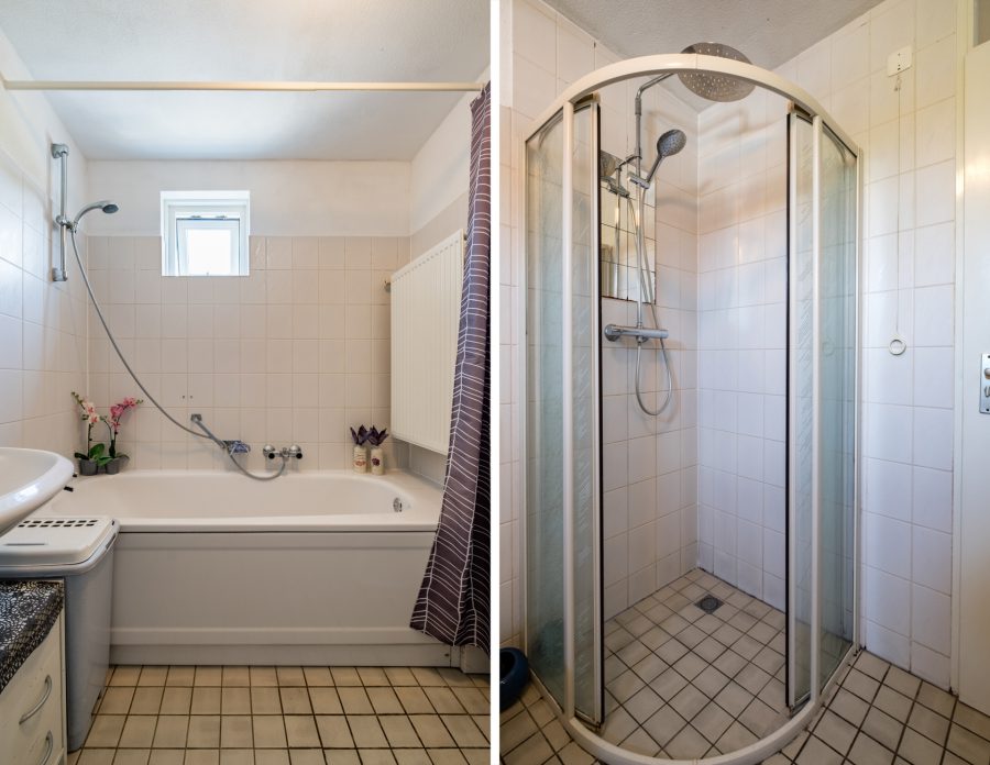 Via the stairs you reach the landing of this floor. Here you will find three bedrooms and the bathroom. Two bedrooms are at the back and the largest bedroom is at the back, with a view to the garden. The rooms are nicely finished. In the bathroom you will find a washbasin with mirror, a standing toilet, a bathtub with shower and a shower cabin.