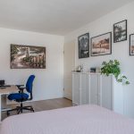 On the first floor of the house, you will find the first two bedrooms and a bathroom. Both bedrooms are spacious, nicely finished and wonderfully light. The bedroom at the back has a large sliding wardrobe.