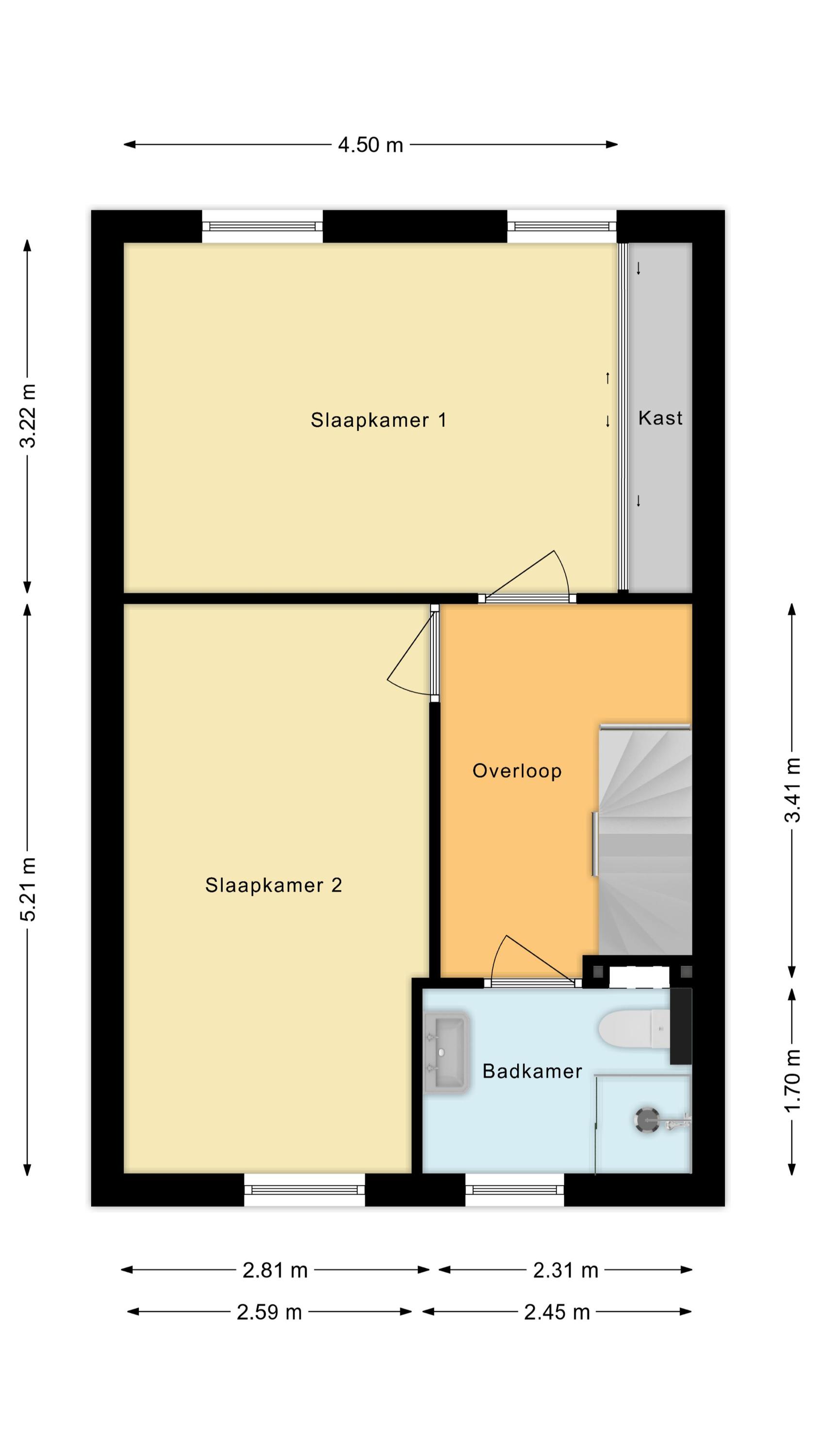 Op de eerste verdieping van het huis vind je de eerste twee slaapkamers en een badkamer. Beide slaapkamers zijn royaal opgezet, netjes afgewerkt en heerlijk licht. De slaapkamer aan de achterzijde beschikt over een grote schuifkast.