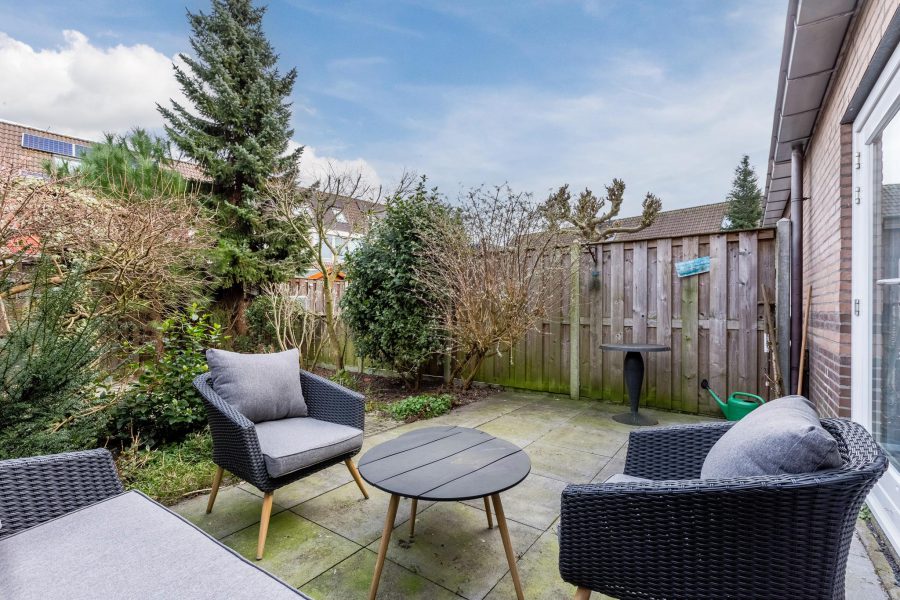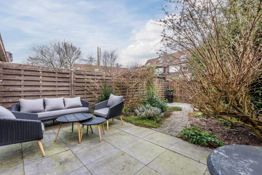 De woning heeft een betegelde voortuin en een deels betegelde, deels groene, goed verzorgde achtertuin. Zowel aan de woning vast als achterin de tuin bevindt zich een betegeld terras waar je een heerlijke loungeplek kunt realiseren en in de zomermaanden gezellig buiten kunt eten met vrienden en familie. Er is een achterom.