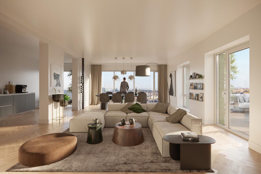 De Groene Jager is een kleinschalig wooncomplex met veertien luxe driekamerappartementen verdeeld over vijf woonlagen. Je kent elkaar. Komt elkaar tegen in de ruime, transparante entree en de ondergrondse privé parkeergarage exclusief voor de eigen bewoners.