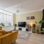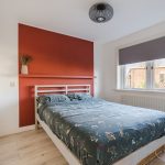 The open staircase in the living room leads to the spacious landing on this floor. From here, you have access to two bedrooms and the bathroom. One of the two bedrooms is at the front and one at the back. Both rooms are spacious, finished with light flooring and fitted with closet space. Both rooms also have excellent natural light.