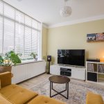 The partially tiled and partially green front garden leads to the front door of this beautiful, terraced house. Behind the front door is a small entrance hall, which provides access to the meter cupboard and the living room.