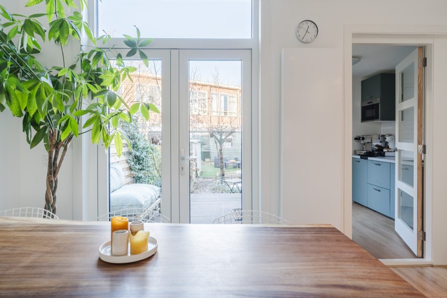 • Deels kunststof, deels houten kozijnen