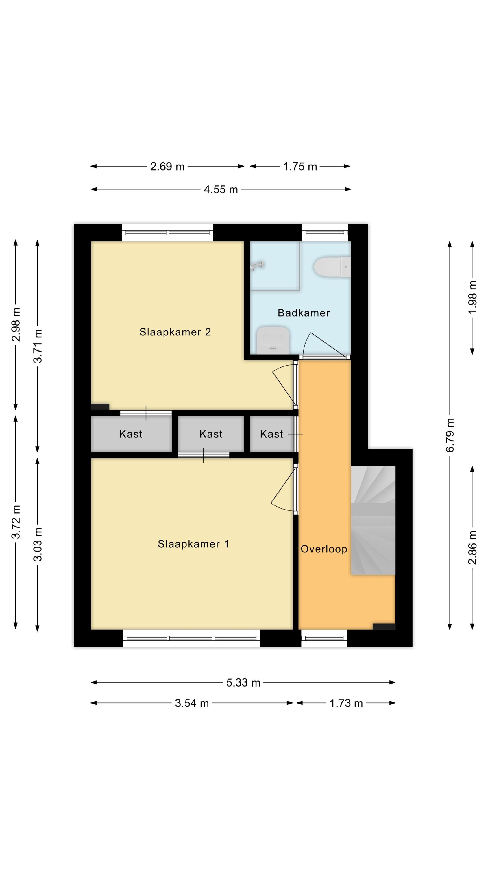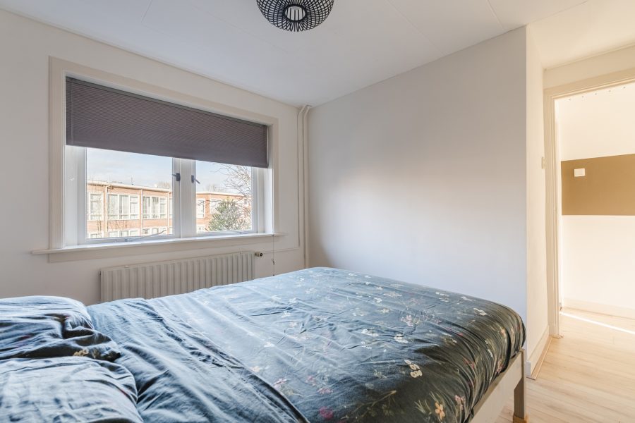 Via de open trap in de woonkamer bereik je de ruime overloop van deze verdieping. Vanaf hier heb je toegang tot twee slaapkamers en de badkamer. Van de twee slaapkamers ligt er één aan de voorzijde en één aan de achterzijde. Beide kamers zijn ruim opgezet, afgewerkt met een lichte vloer en voorzien van kastruimte. Ook de lichtinval is in beide kamers uitstekend.