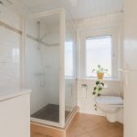 • Eenvoudige badkamer met toilet, wastafel en douchecabine