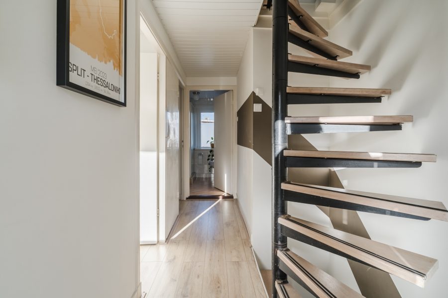 Een vaste trap geeft toegang tot de zolder. Deze verdieping is zeer ruim en licht dankzij de dakkapel aan de achterzijde en wordt verder verlicht met inbouwspots. Dankzij de beschikbare ruimte zijn er volop mogelijkheden. Deze verdieping leent zich uitstekend als werkplek of hobbykamer, maar kan ook worden gebruikt als extra slaapkamer. Aan de achterzijde is bergruimte gecreëerd.