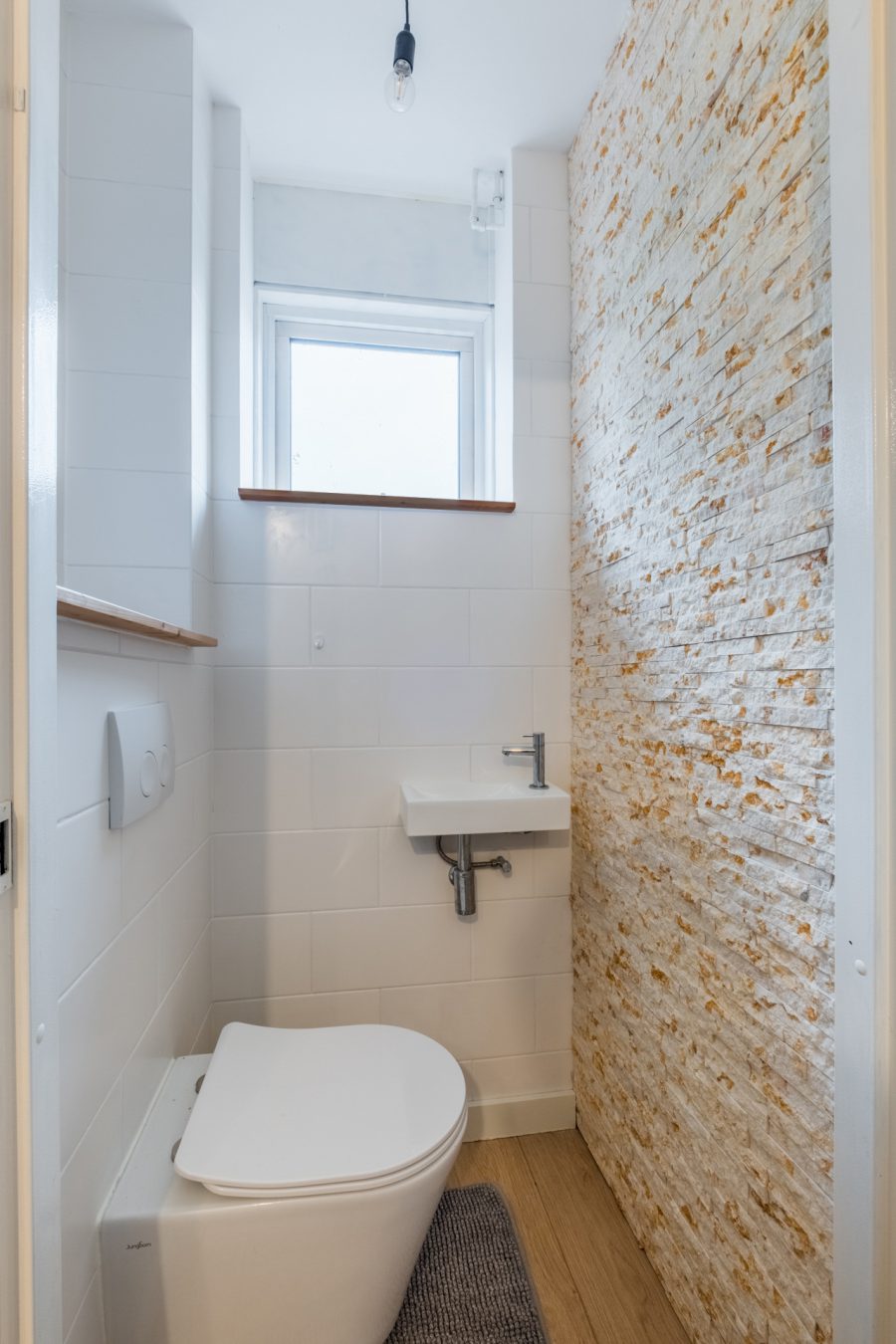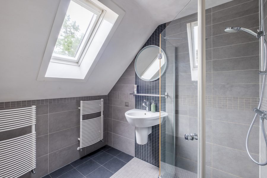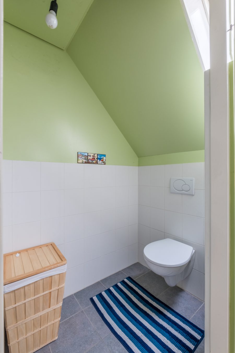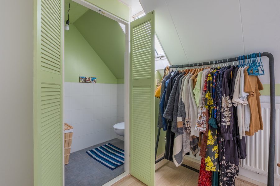 Via de mooi gerenoveerde trap bereik je de overloop. Hier zijn twee keurig afgewerkte slaapkamers, een badkamer en een afgesloten ruimte voor het witgoed te vinden, voorzien van een separaat toilet. Een slaapkamer ligt aan de achterzijde, naast de badkamer, en is voorzien van vaste kasten. Daglicht komt via een raam en een Velux dakraam binnen. De nieuwe eigentijdse badkamer is voorzien van een badmeubel, een wastafel met spiegel, designradiatoren en een inloopdouche. Aan de voorzijde is de tweede, ruime slaapkamer gesitueerd. Ook hier komt daglicht via een raam en een Velux dakraam binnen. In deze kamer vind je louvredeuren naar een kast met de aansluiting voor het witgoed, de cv-installatie en een separaat toilet. Ook deze kamer is voorzien van een pvc-vloer.