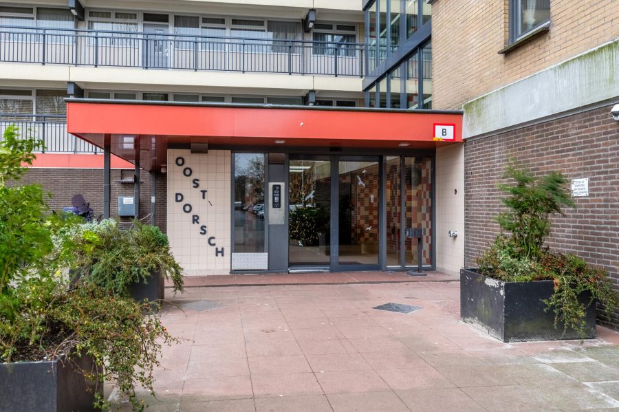 Gesloten entree met bel en intercom. Gemeenschappelijke hal met trappenhuis en 2 liften.