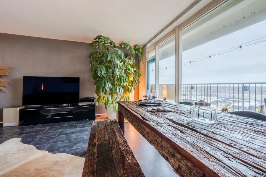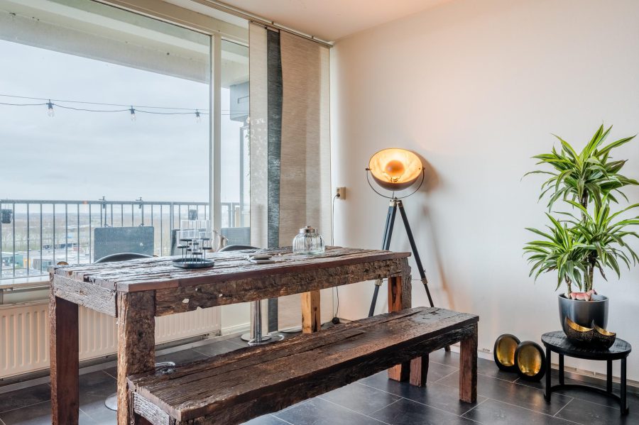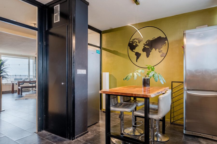 This spacious apartment with unobstructed views over the water and over Zaandam is beautifully located on the 13th floor of an apartment complex. The complex is located by the water. In front of the complex are a playground and a football field. Several restaurants can be found in the immediate vicinity and a supermarket is within walking distance. Accessibility is excellent: the De Vlinder bus station is within walking distance and Zaandam railway station can be reached by bike in 15 minutes, as well as the bustling centre of Zaandam, where you will find many amenities and various cultural facilities.