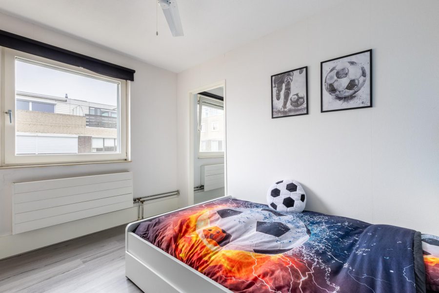 De twee slaapkamers en de tussenkamer zijn ruim opgezet en netjes afgewerkt met een mooie vloer. De slaapkamer aan de achterzijde ligt over de gehele breedte van het huis en biedt daardoor volop ruimte. In alle kamers zijn de wanden en plafonds keurig afgewerkt en is de lichtinval uitstekend.