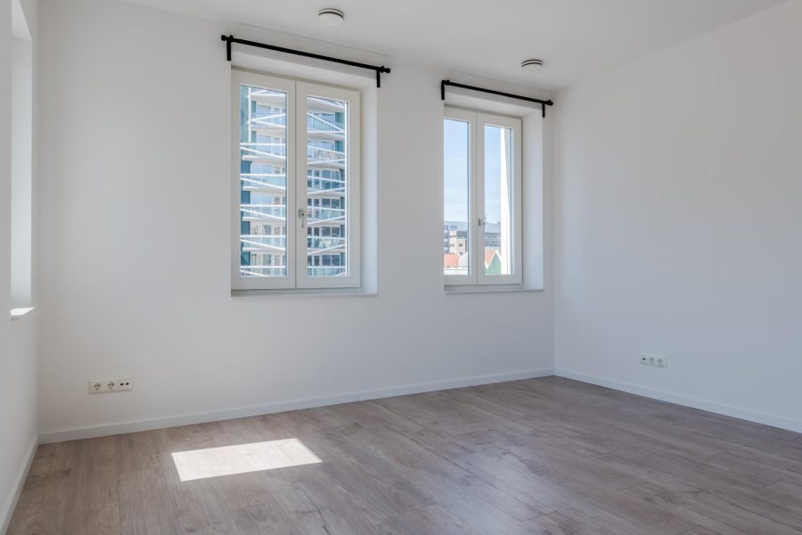 In het gehele appartement ligt een mooie pvc-vloer met eronder vloerverwarming en de muren en plafonds zijn strak en neutraal afgewerkt.